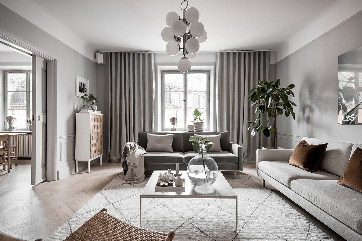Серые шторы в интерьере