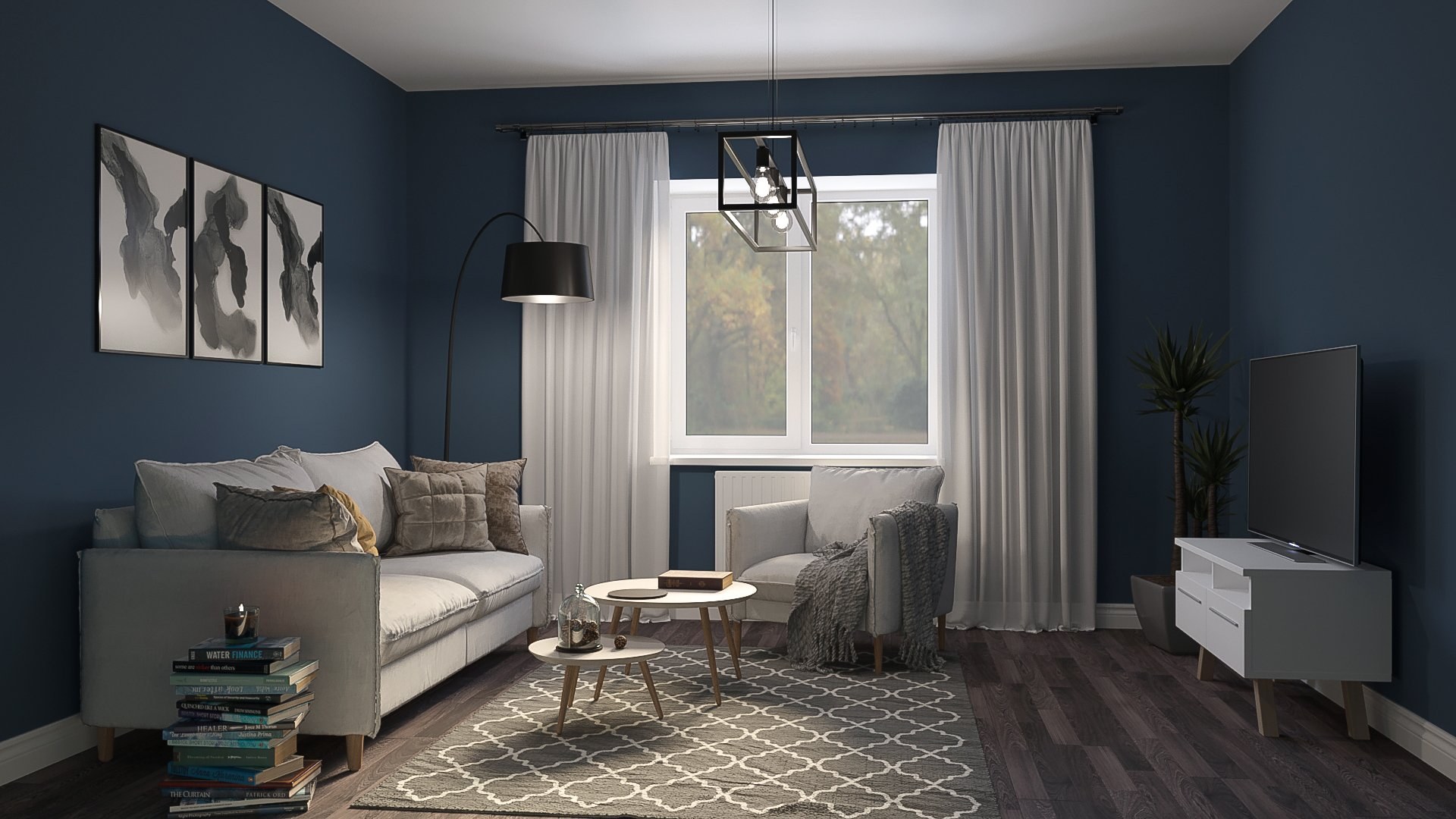 Гостиная в серо синих тонах