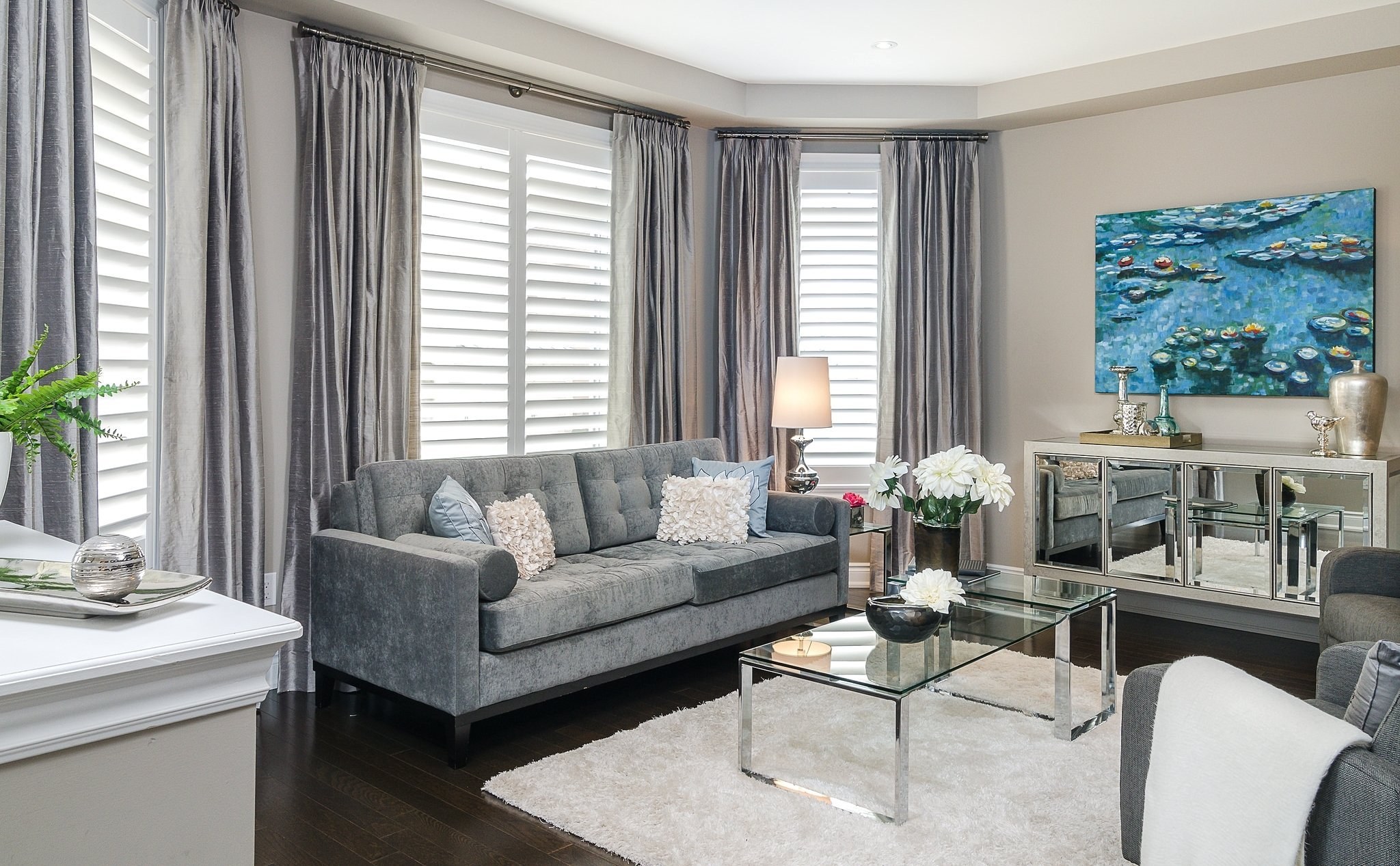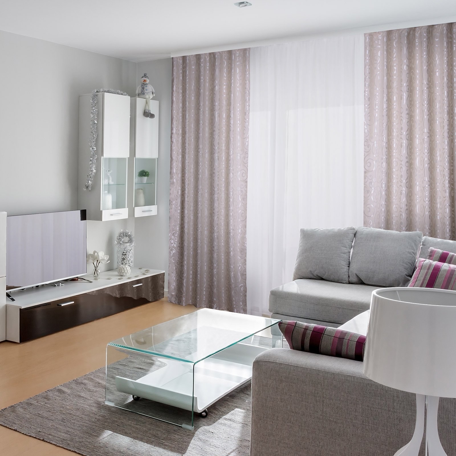 Шторы в серой гостиной