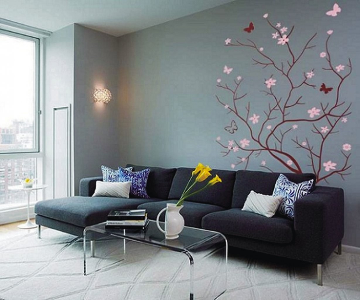 Крашенные стены в гостиной
