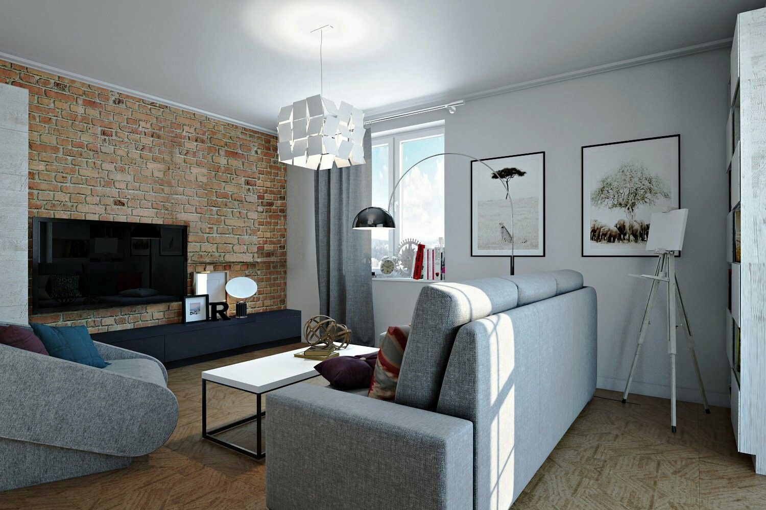 Гостиная с серыми шторами