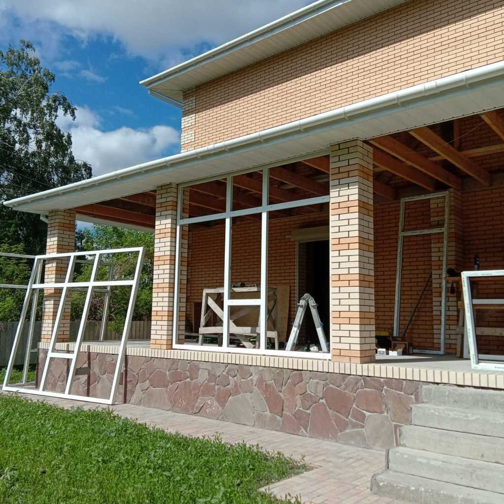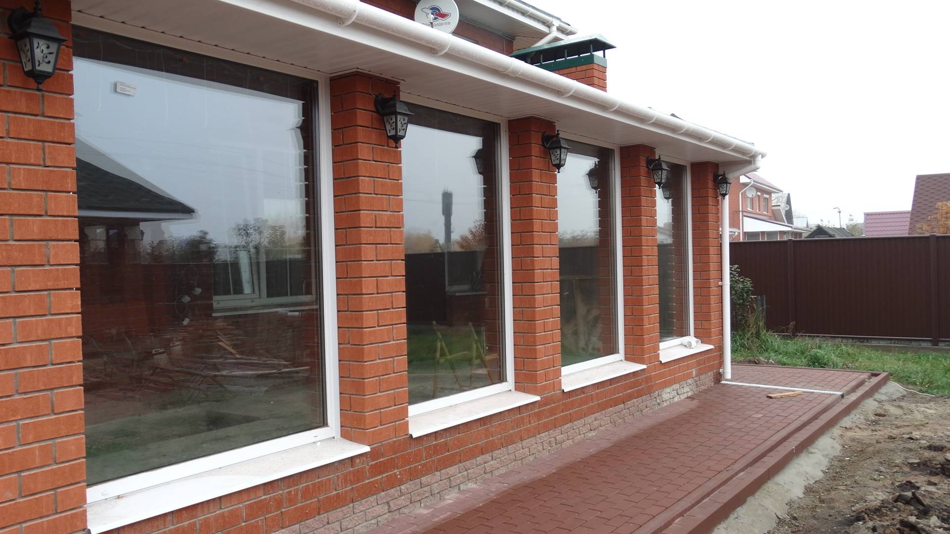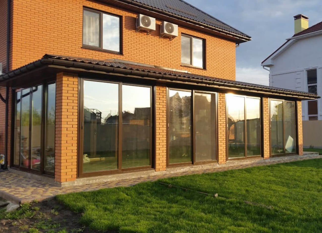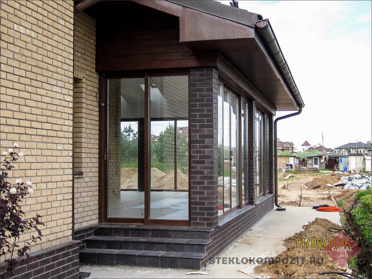 Застеклённая веранда к кирпичному дому