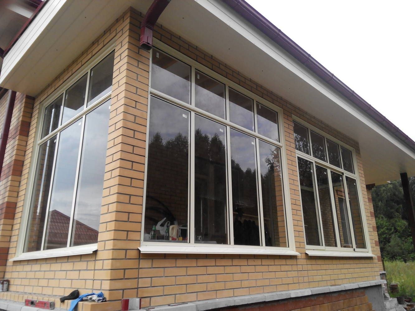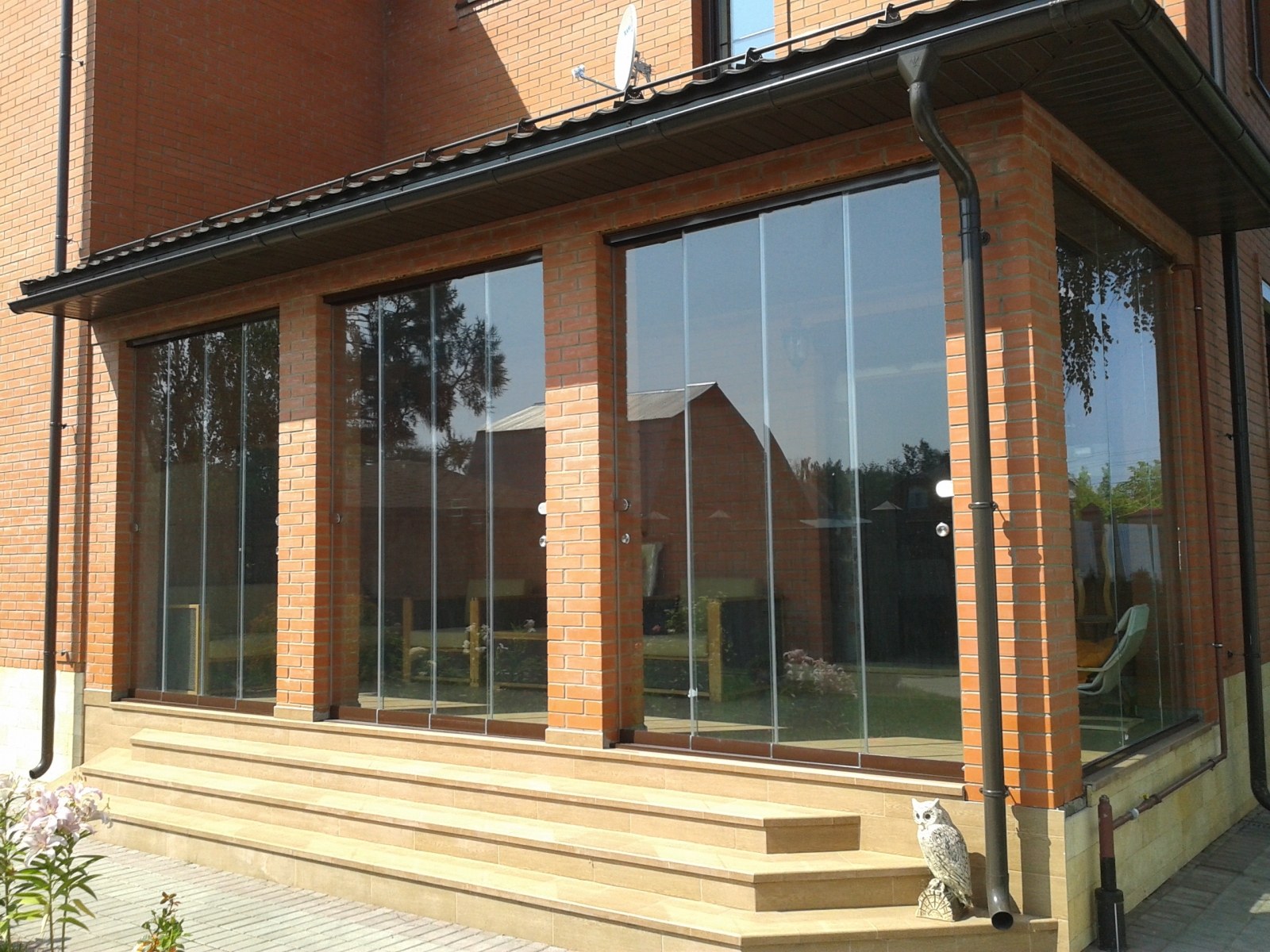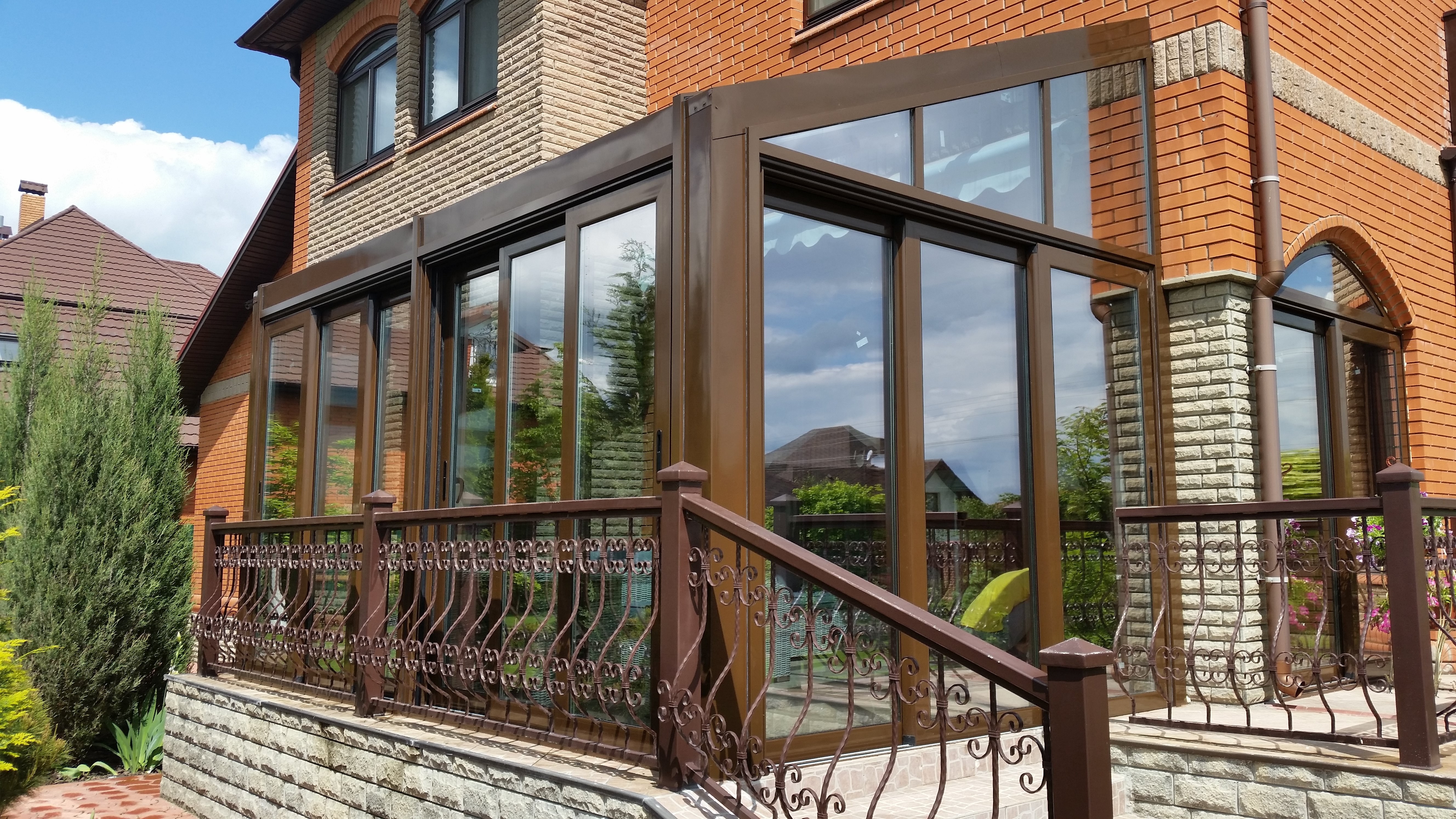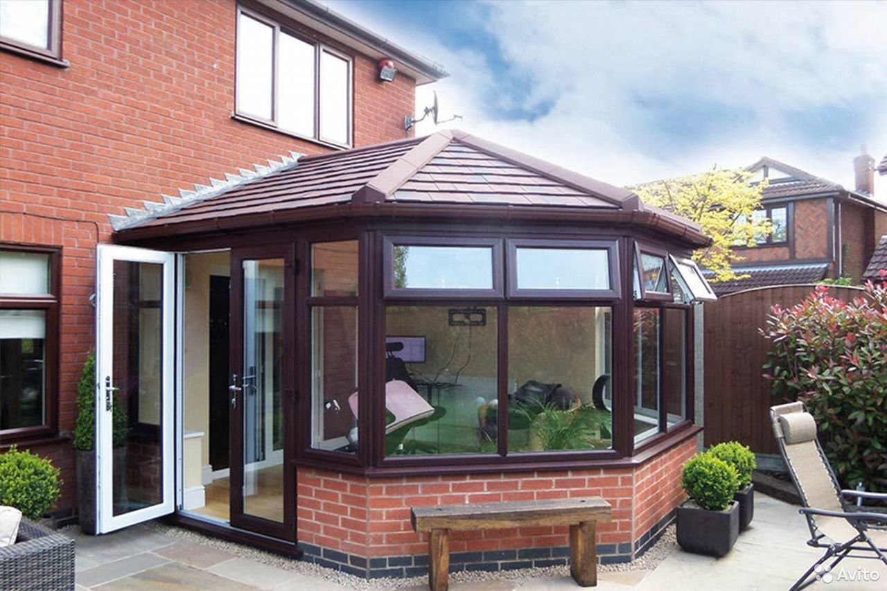 Застеклённая веранда к кирпичному дому