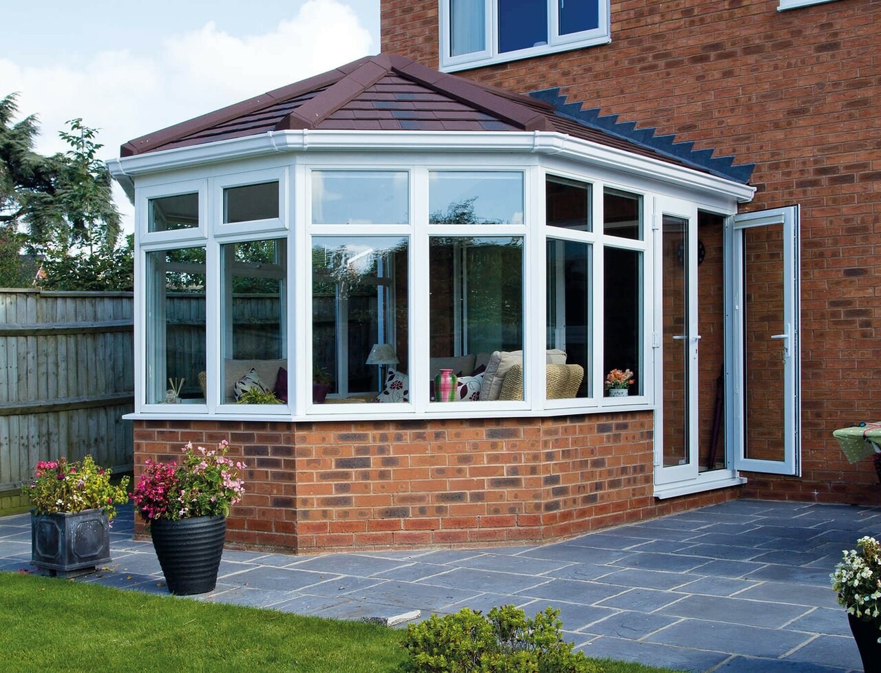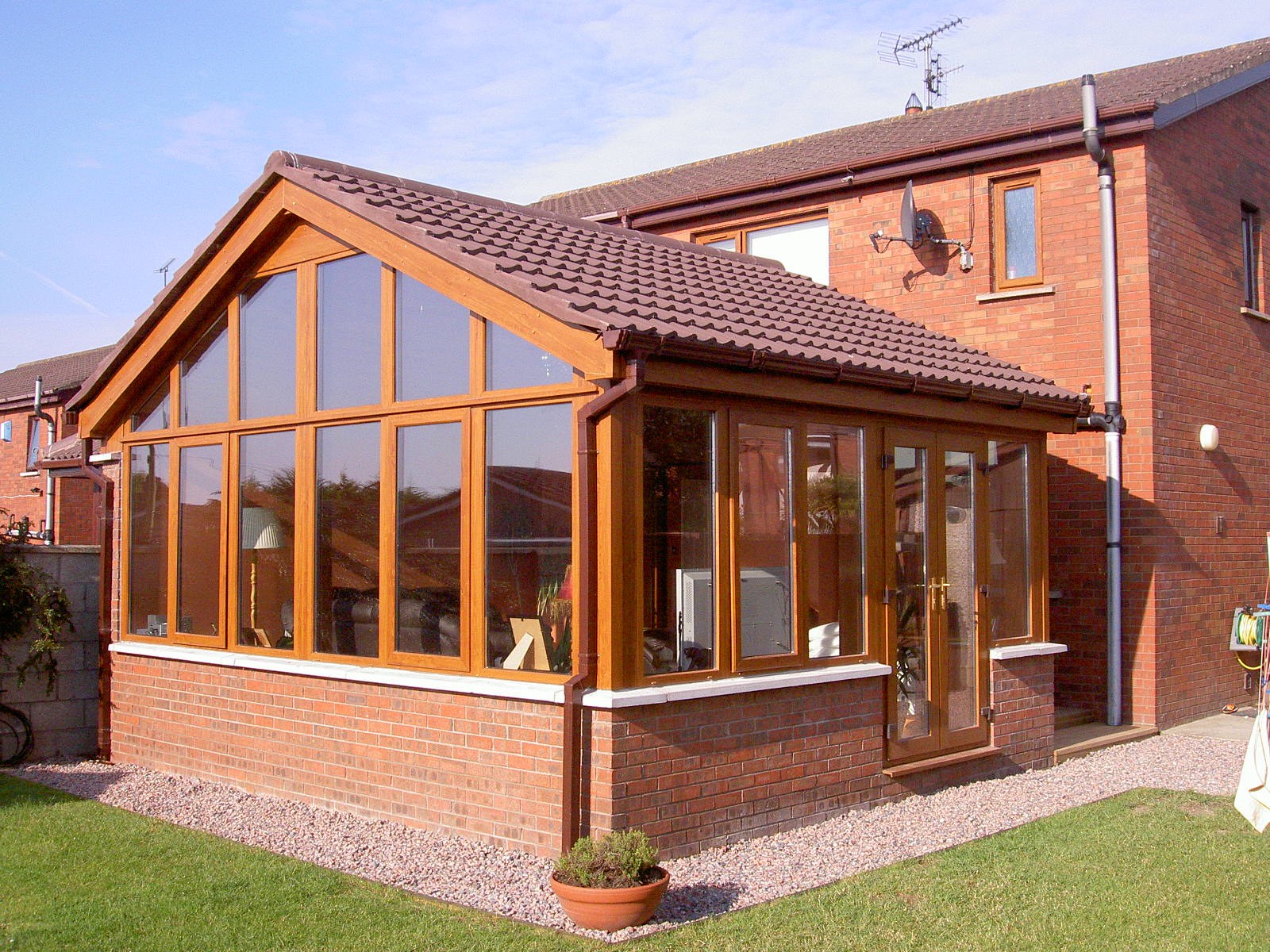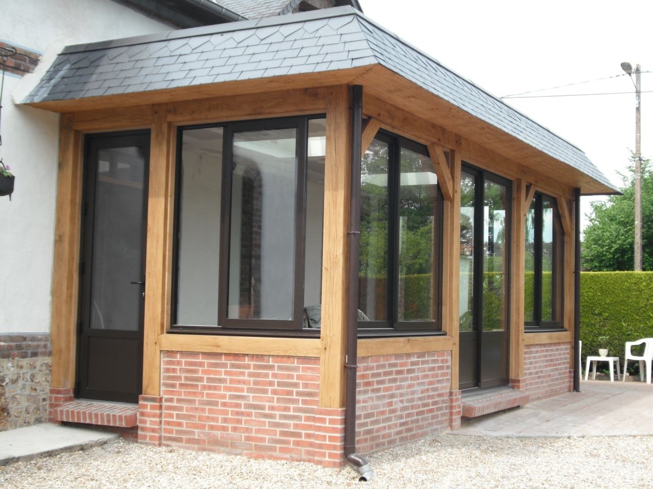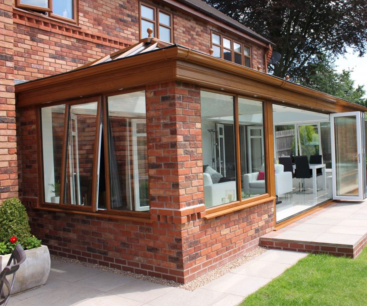 Застеклённая веранда к кирпичному дому