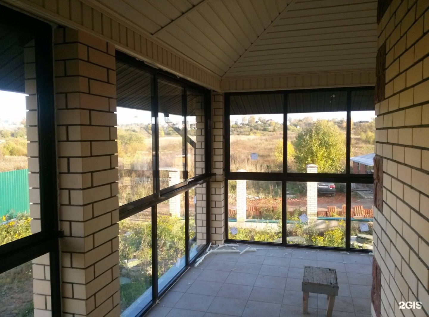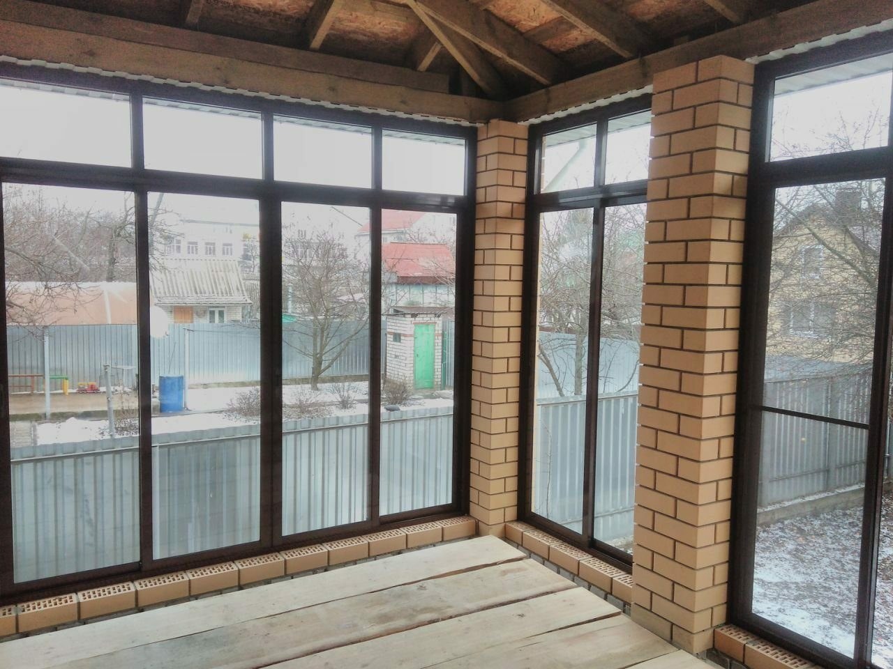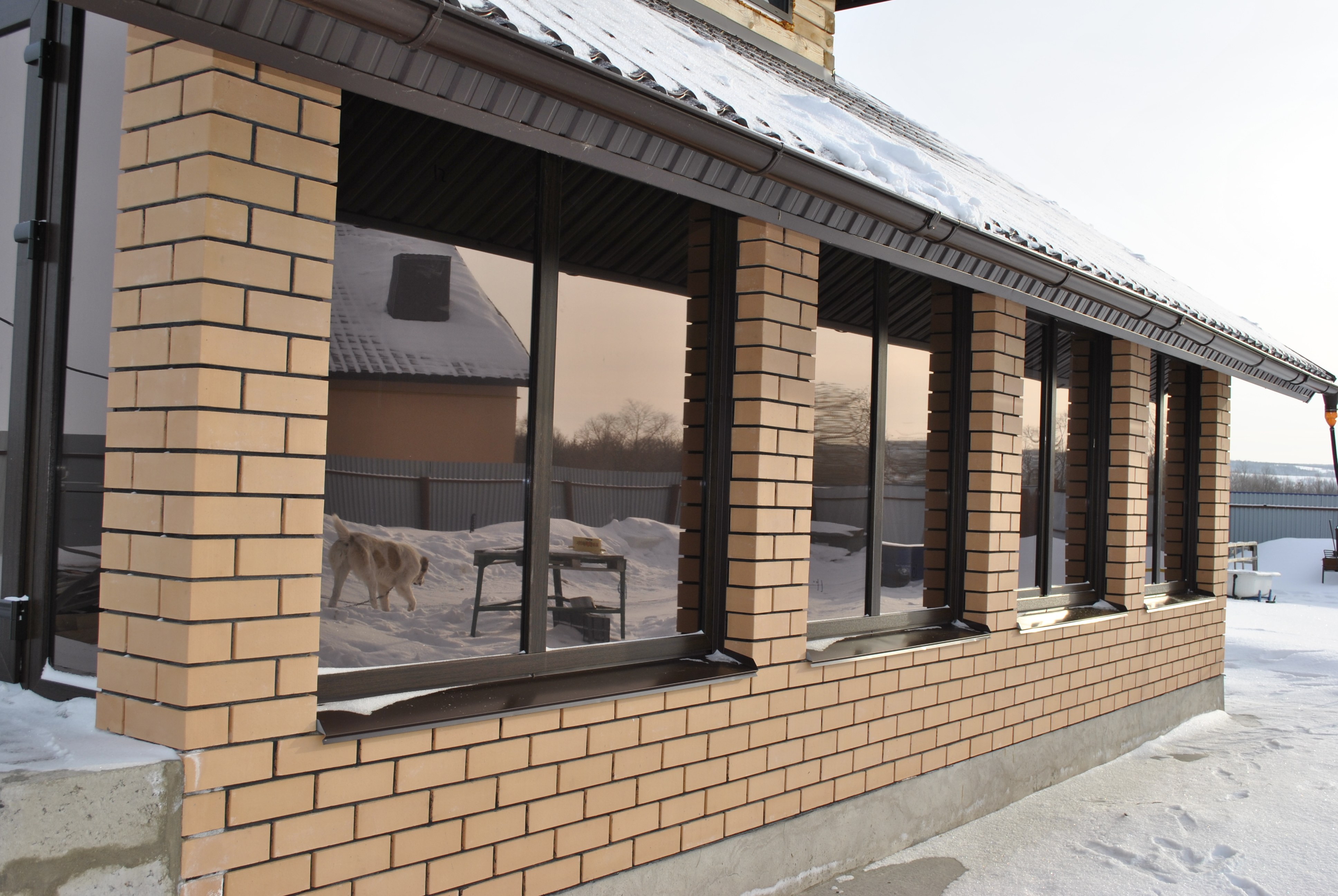 Застекленная веранда с кирпичными столбами