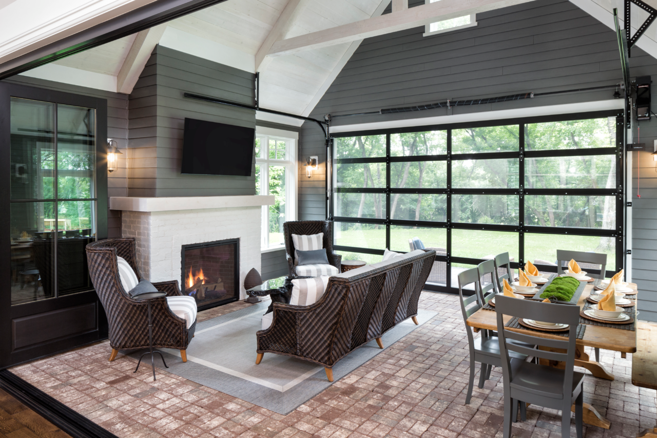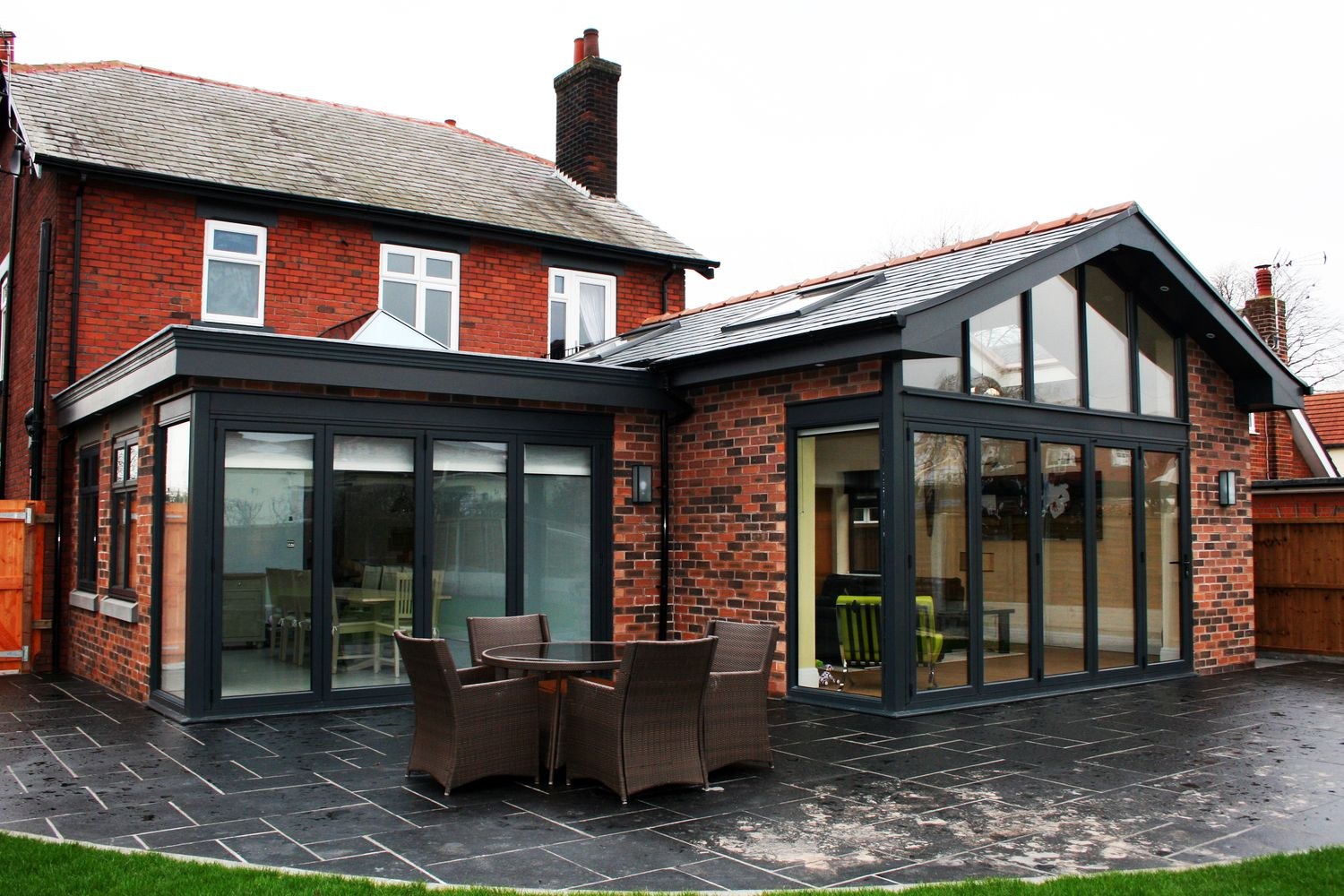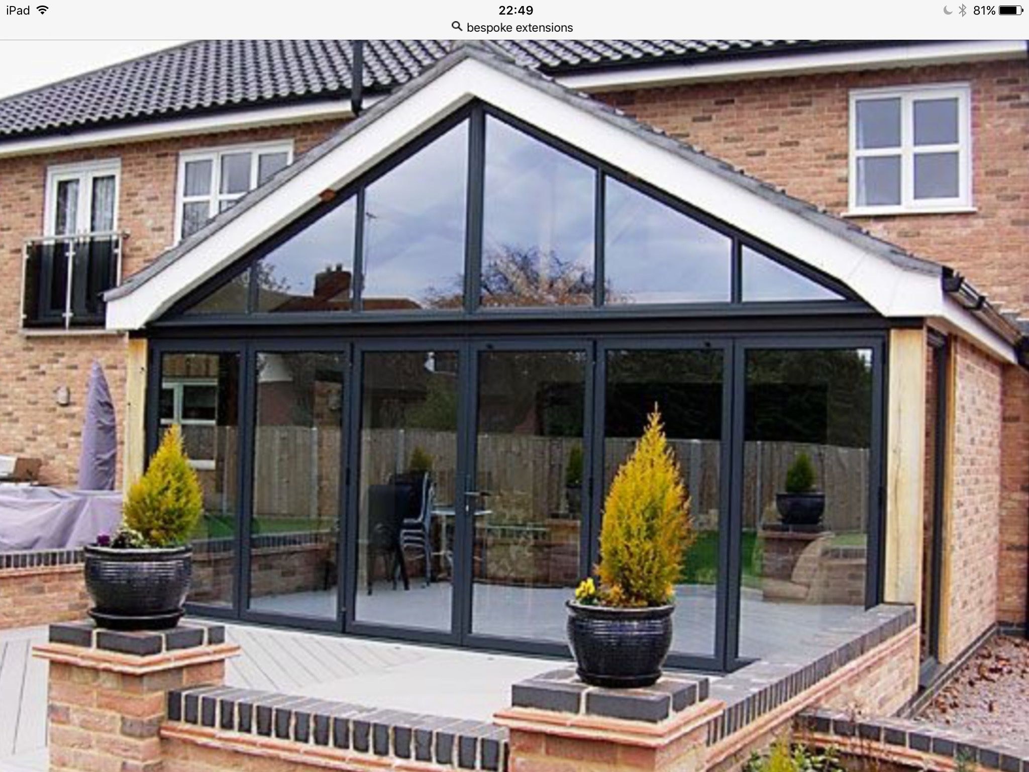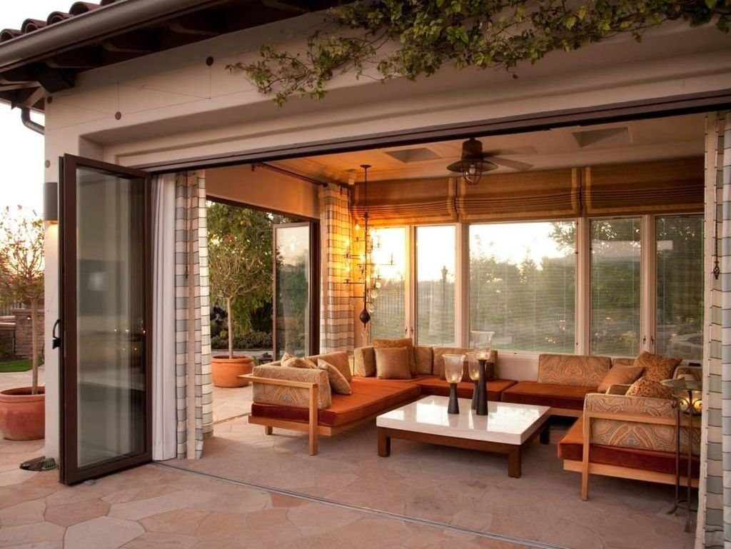 Терраса к дому из кирпича с большими окнами (77 фото)