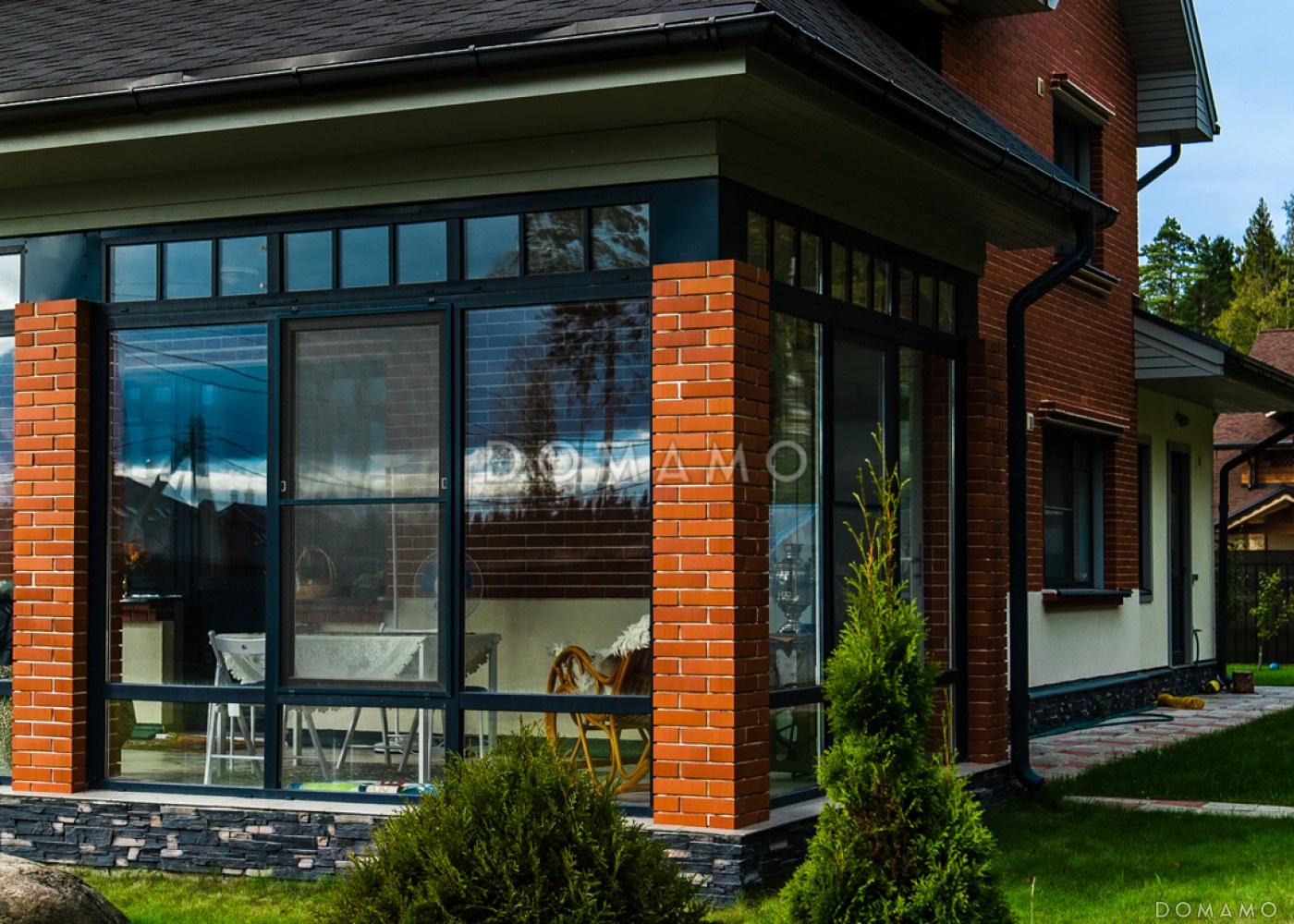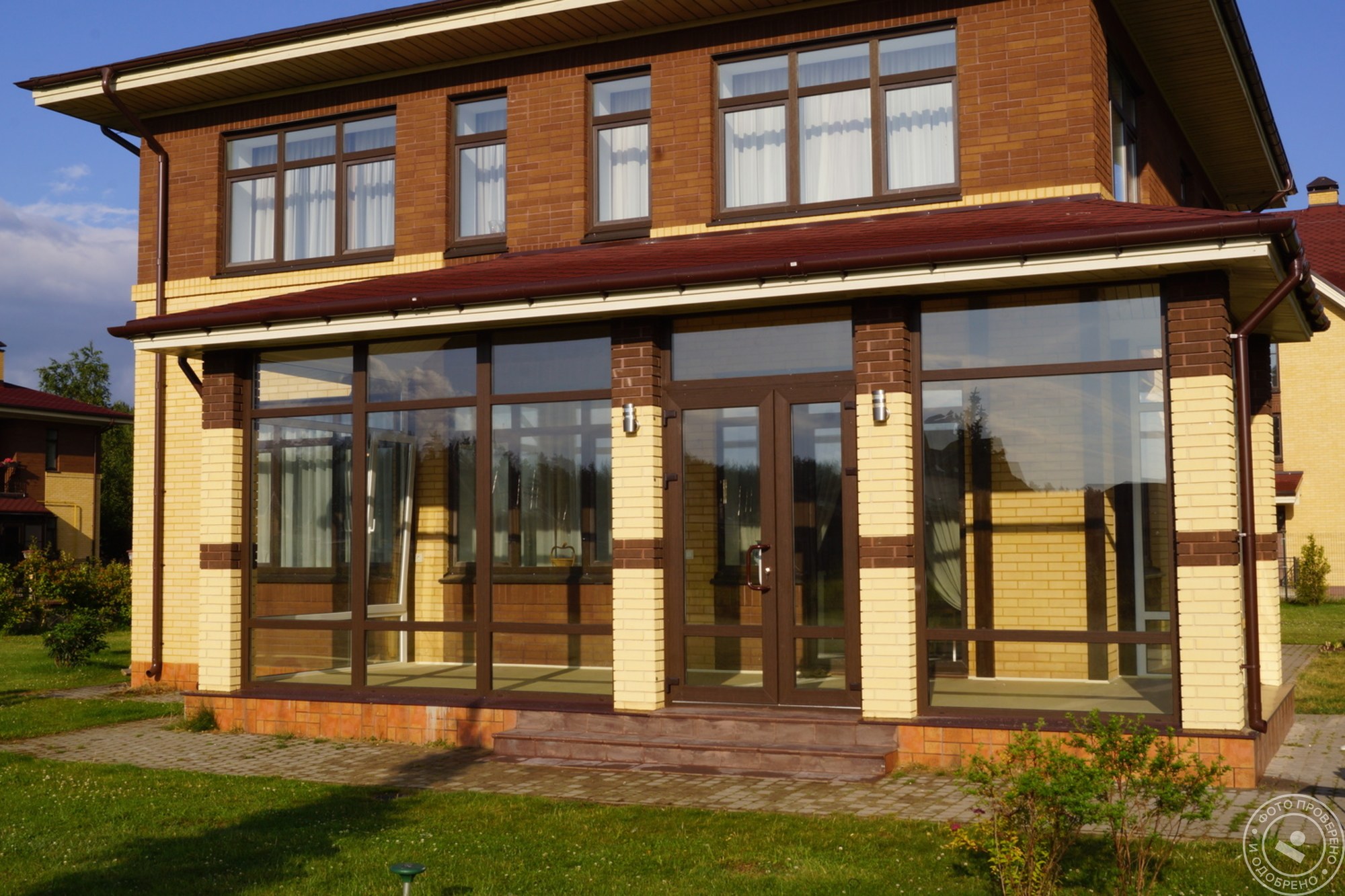 Кирпичный дом со стеклянной верандой