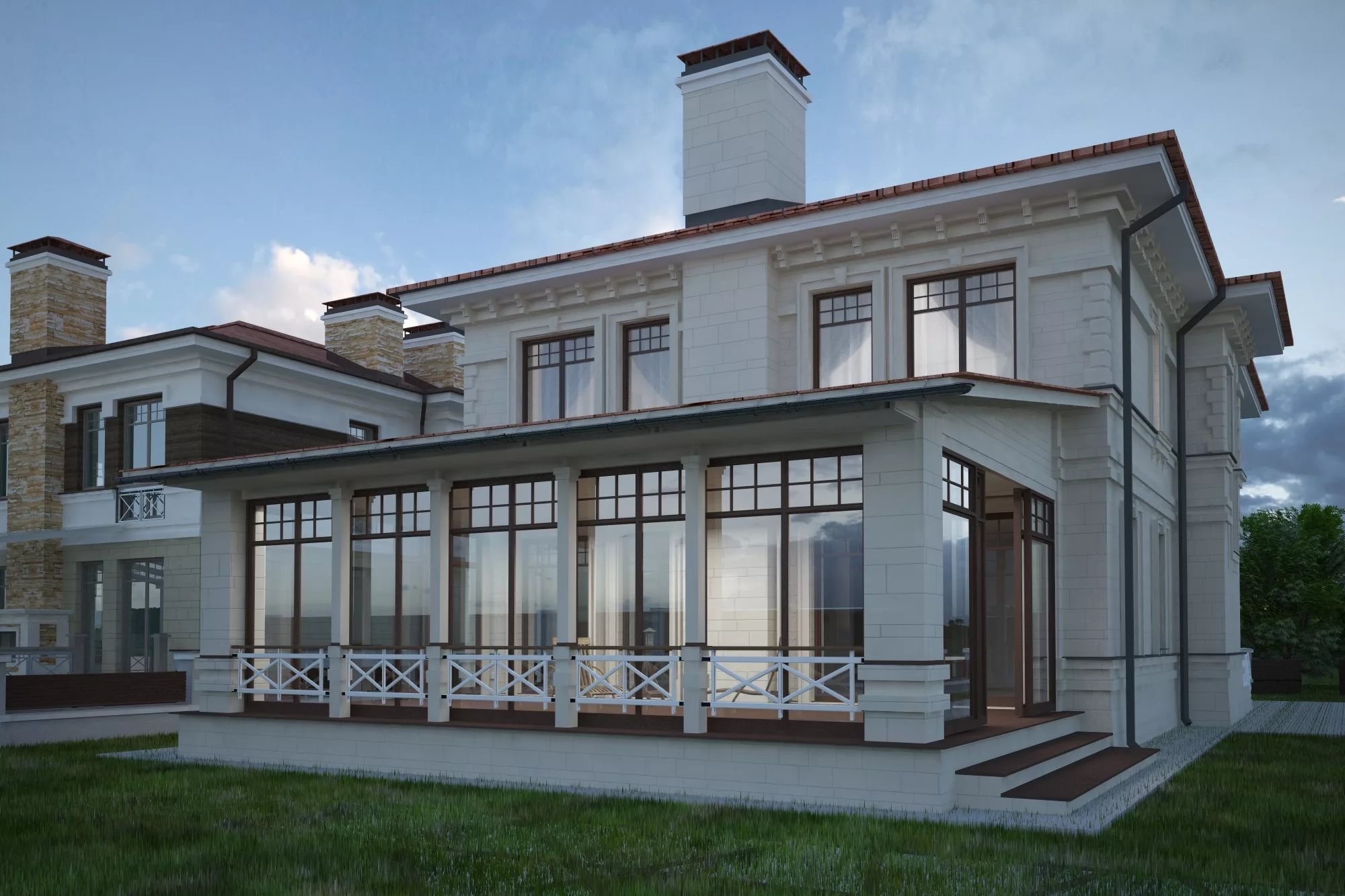 Двухэтажный дом со стеклянной верандой