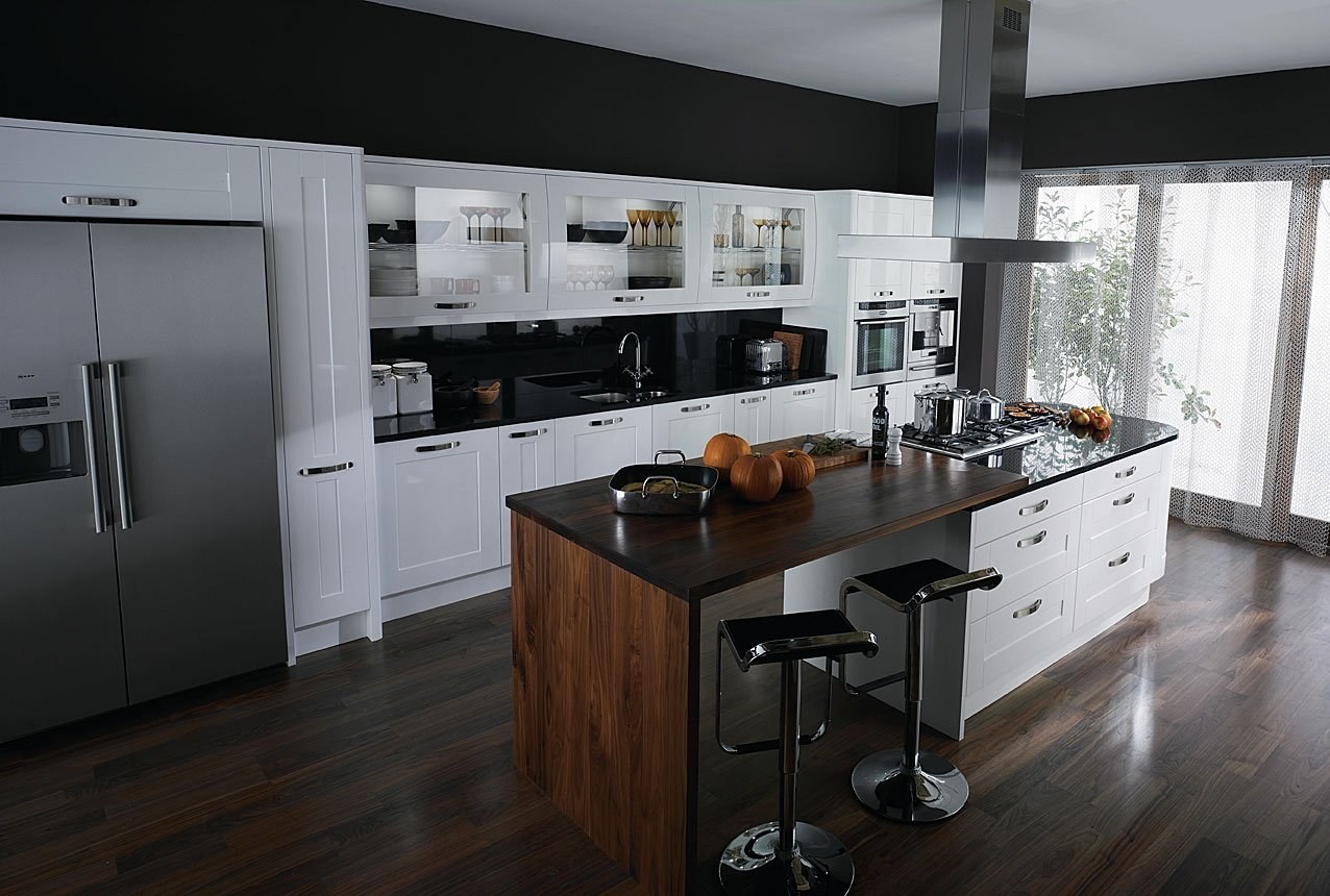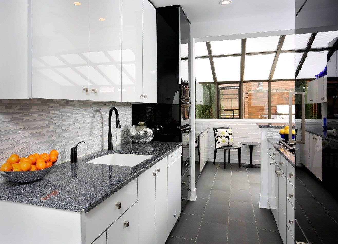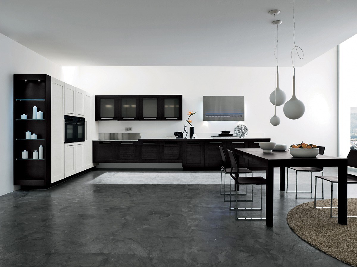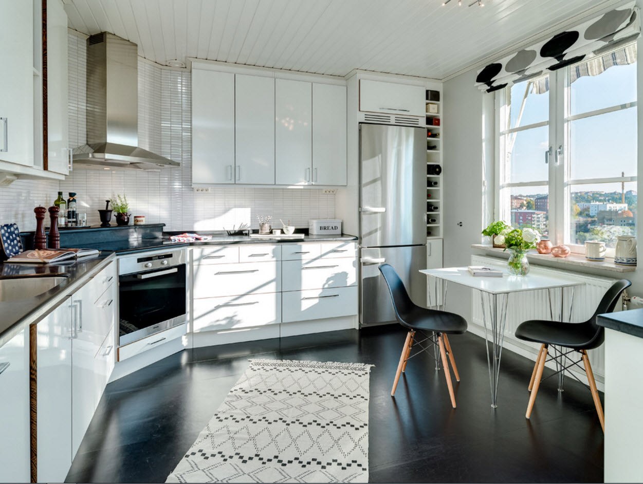 Белая кухня с черным полом (67 фото)