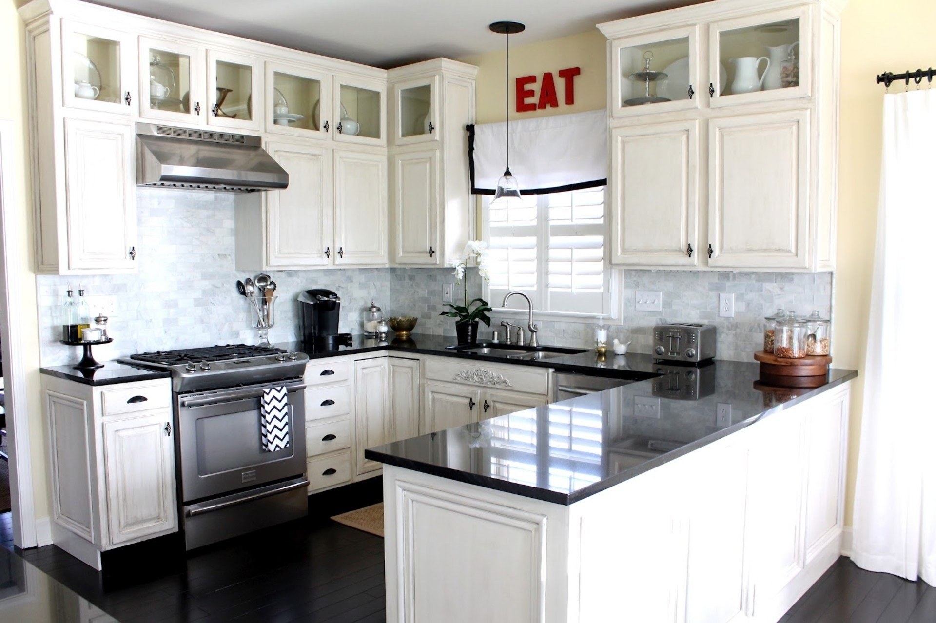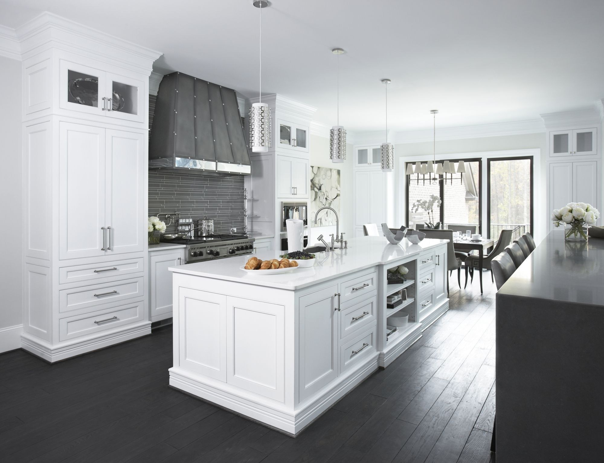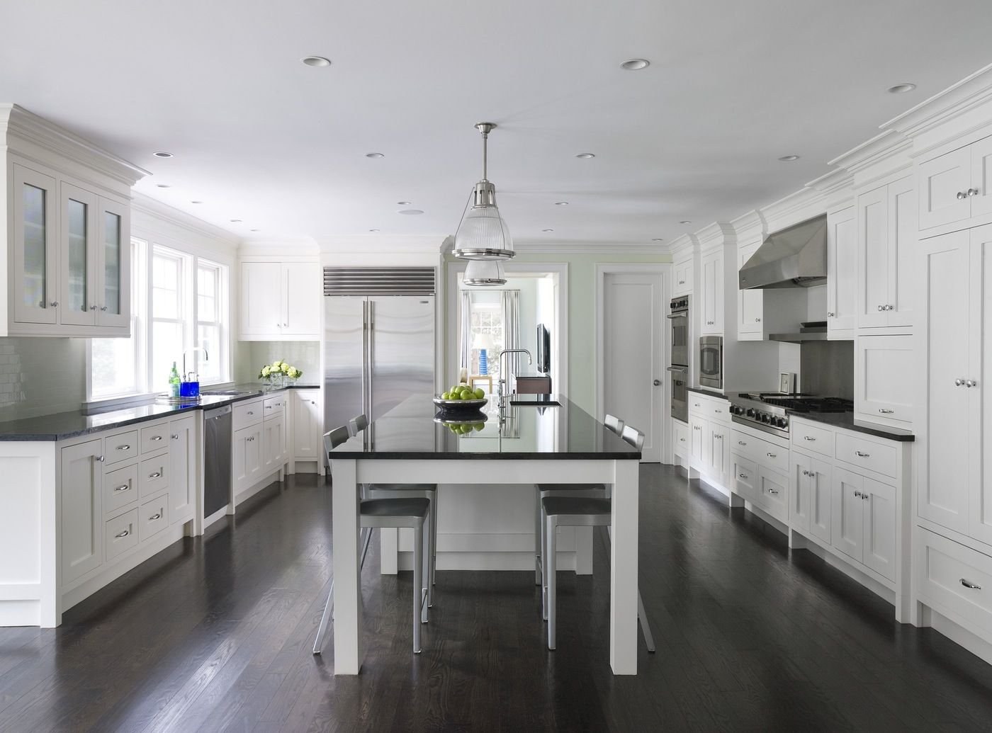 Белая кухня с черным полом (67 фото)
