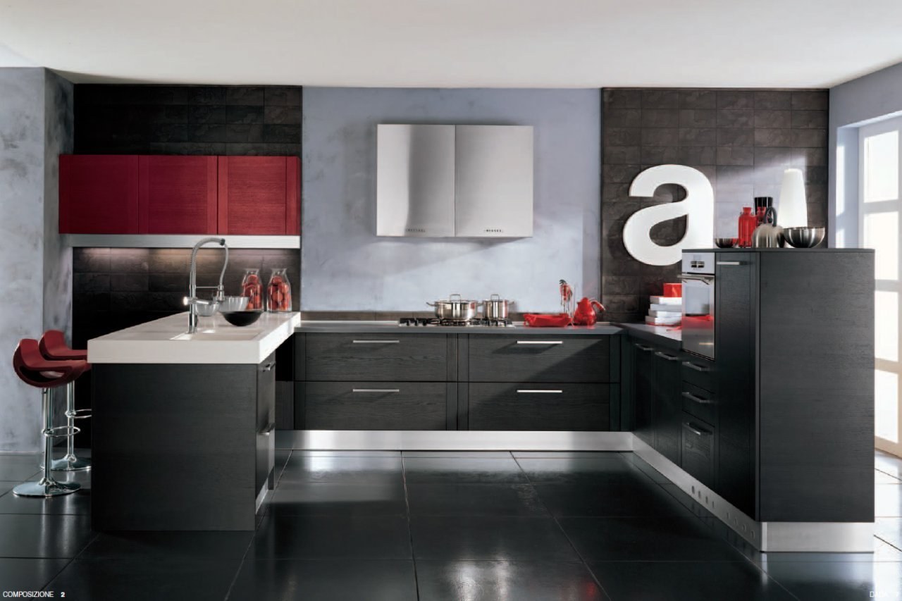 Кухня с черным полом