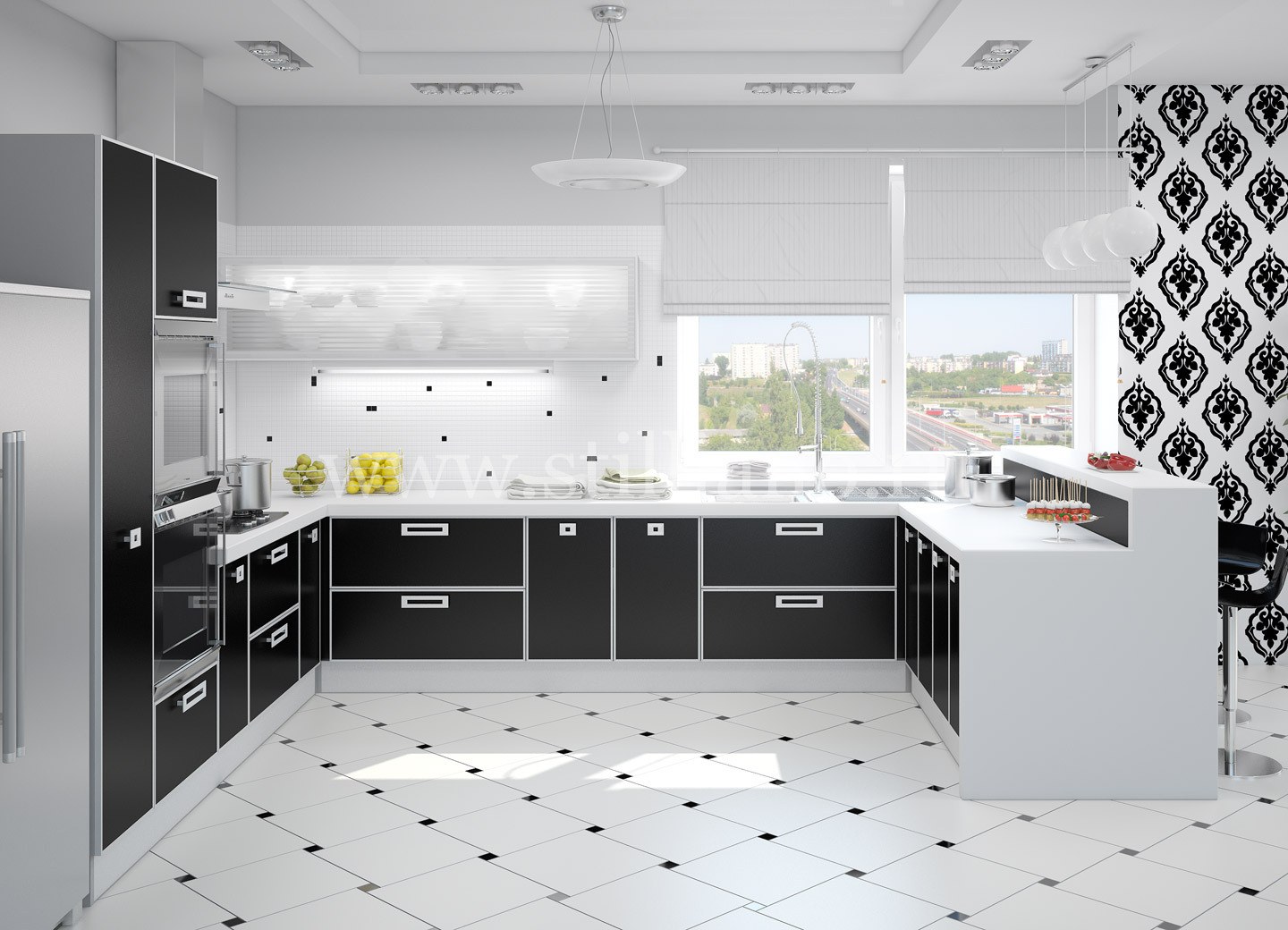 Стильная черно белая кухня