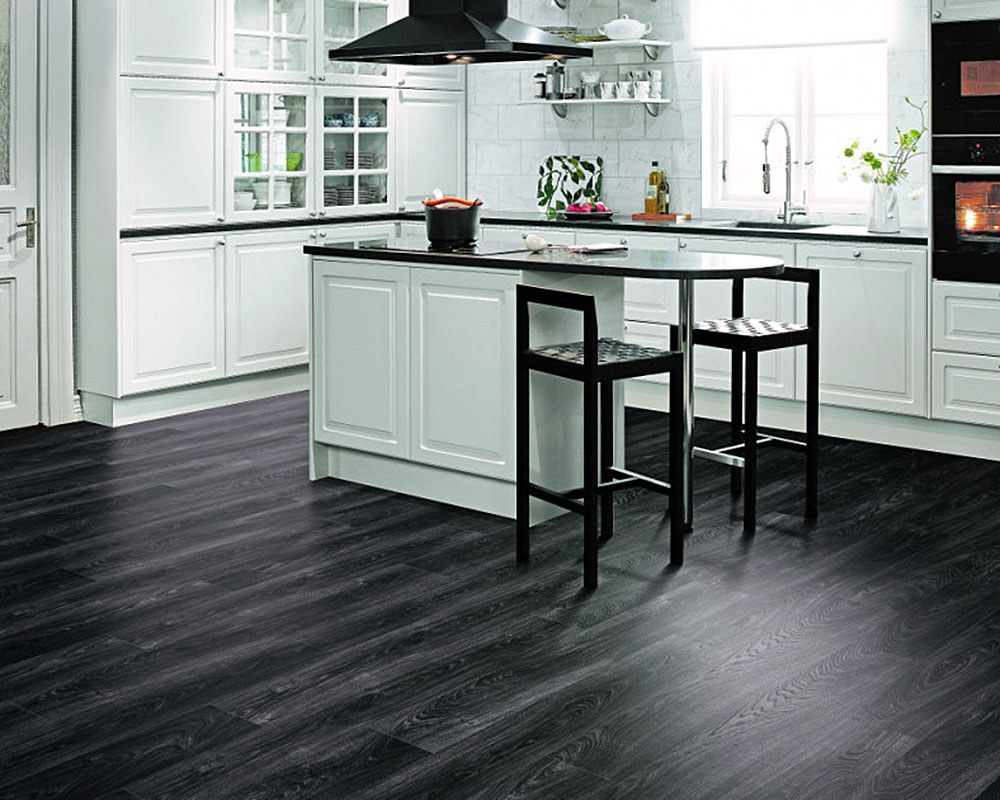 Кухня с черными полами