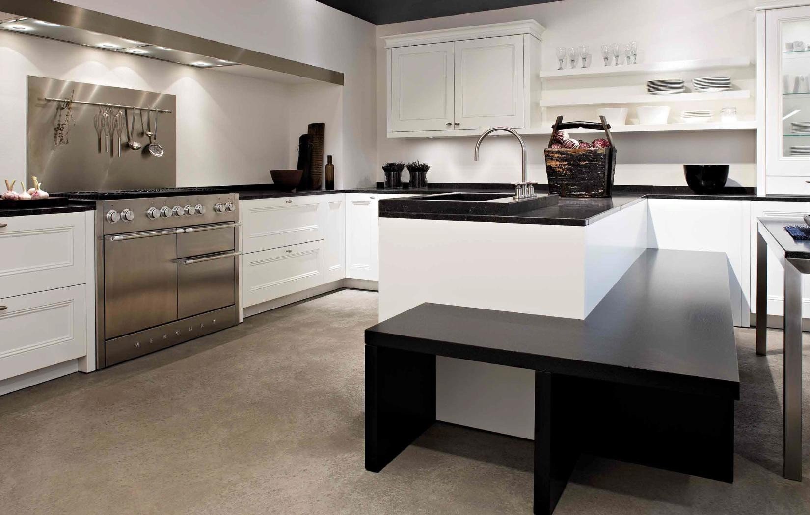 Современная черно белая кухня с островом