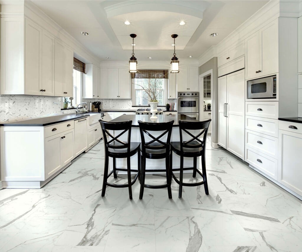 Кухня с мраморным полом
