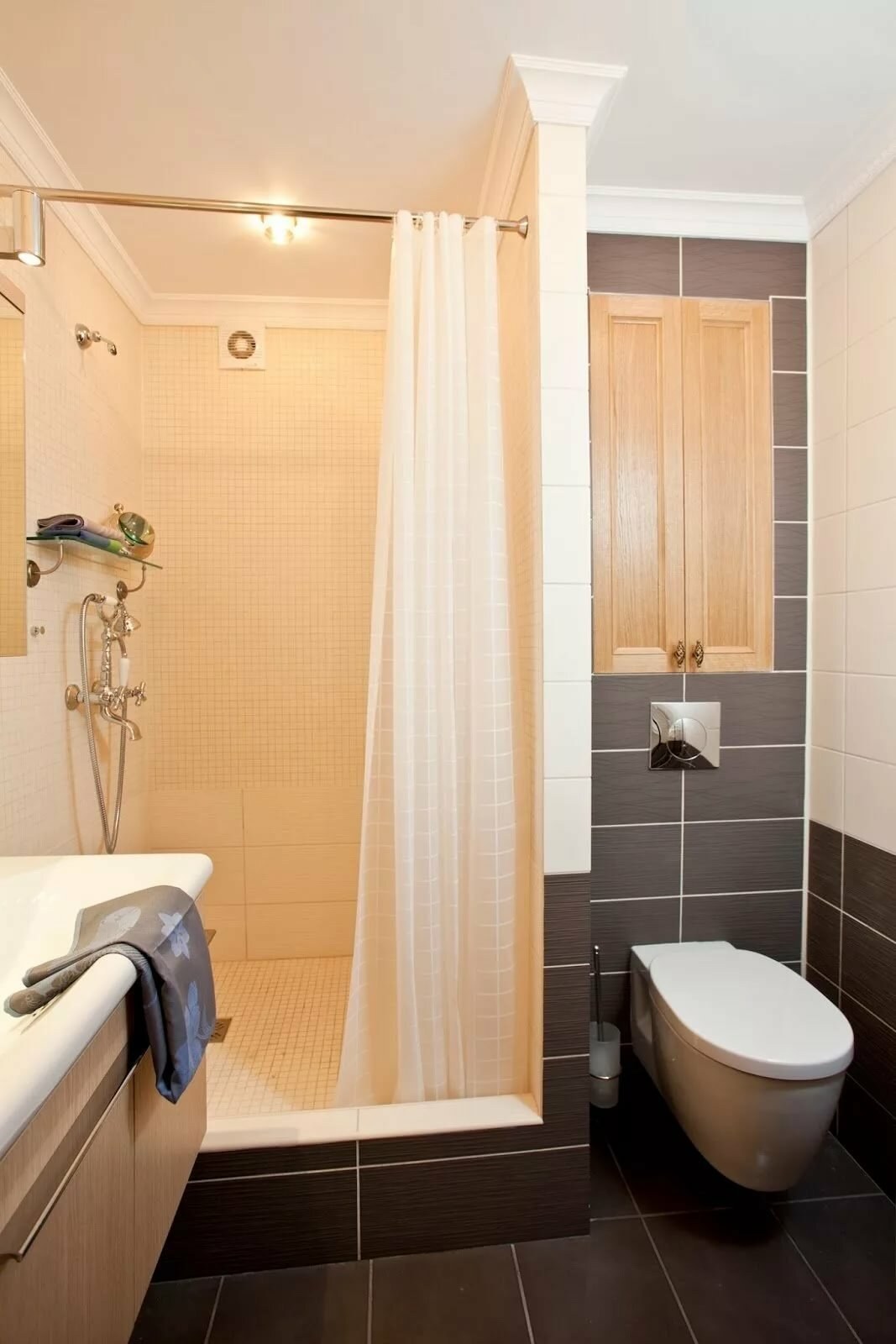 Ванная в коричнево-бежевых тонах 5 кв.м