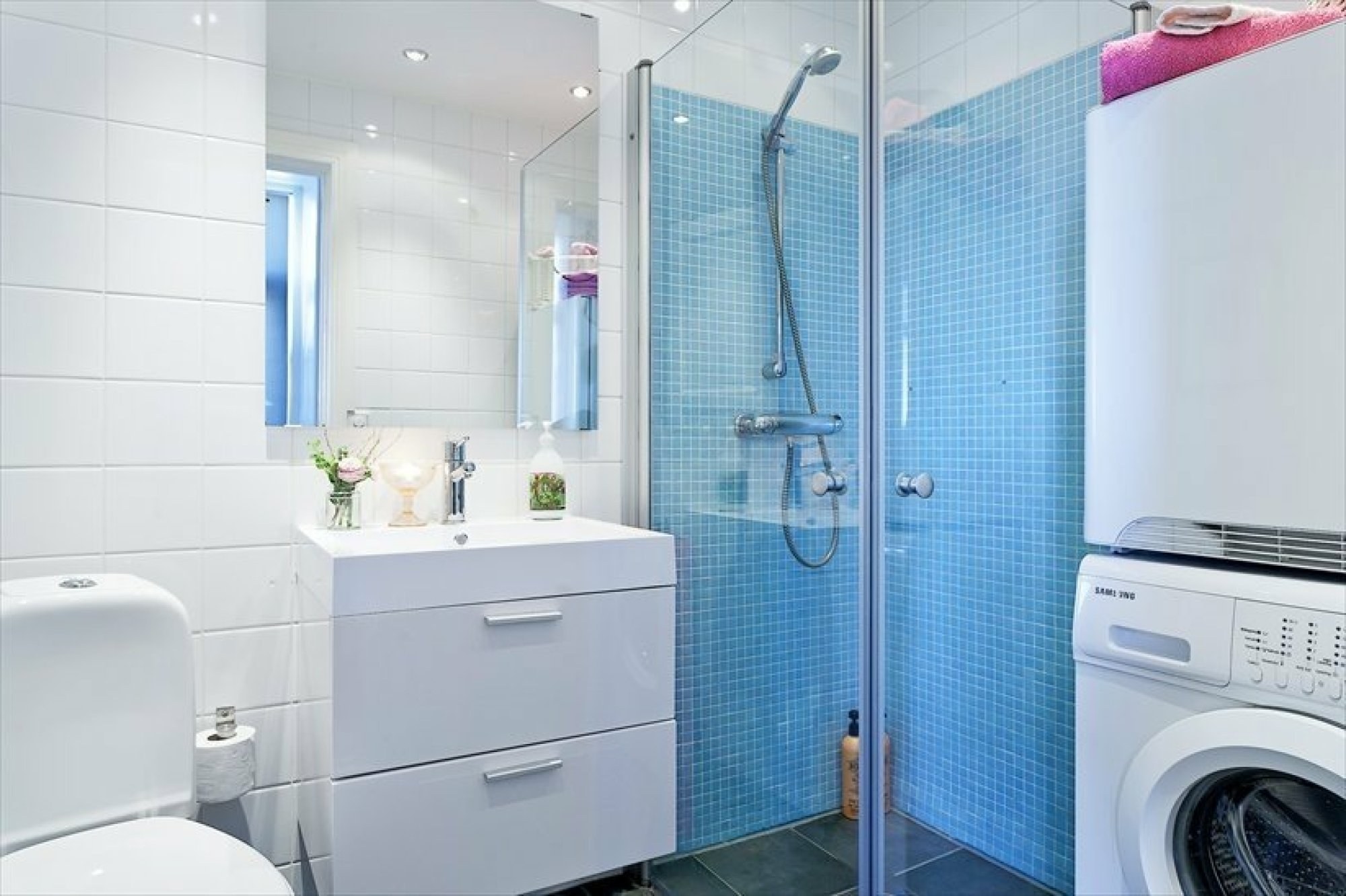 Голубая ванная с душевой кабиной