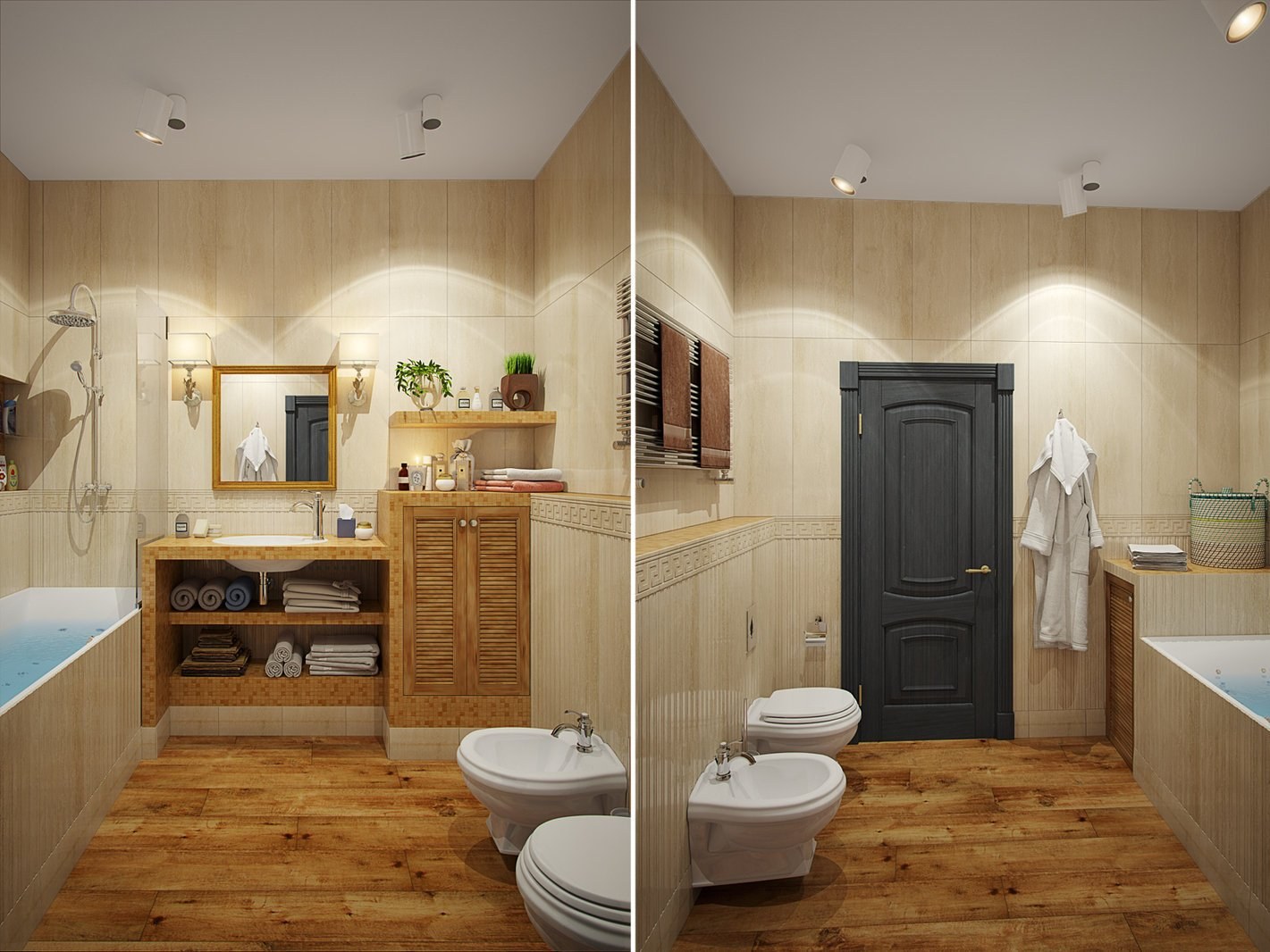Ванная с душевой под дерево