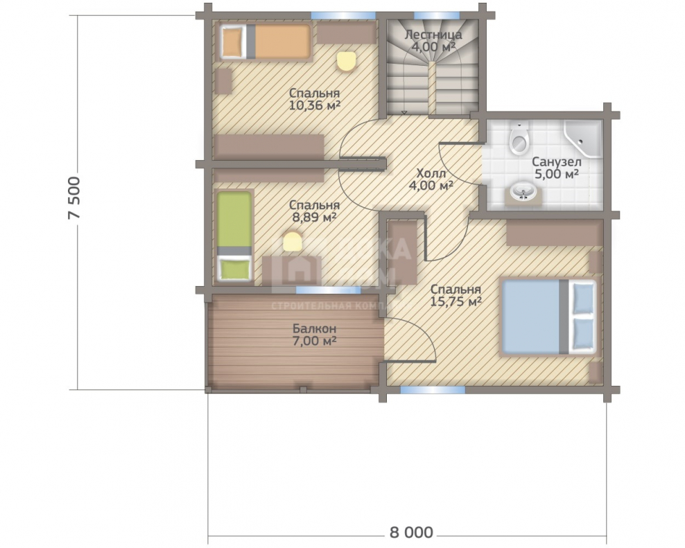 Деревянный дом 7х7 двухэтажный планировка