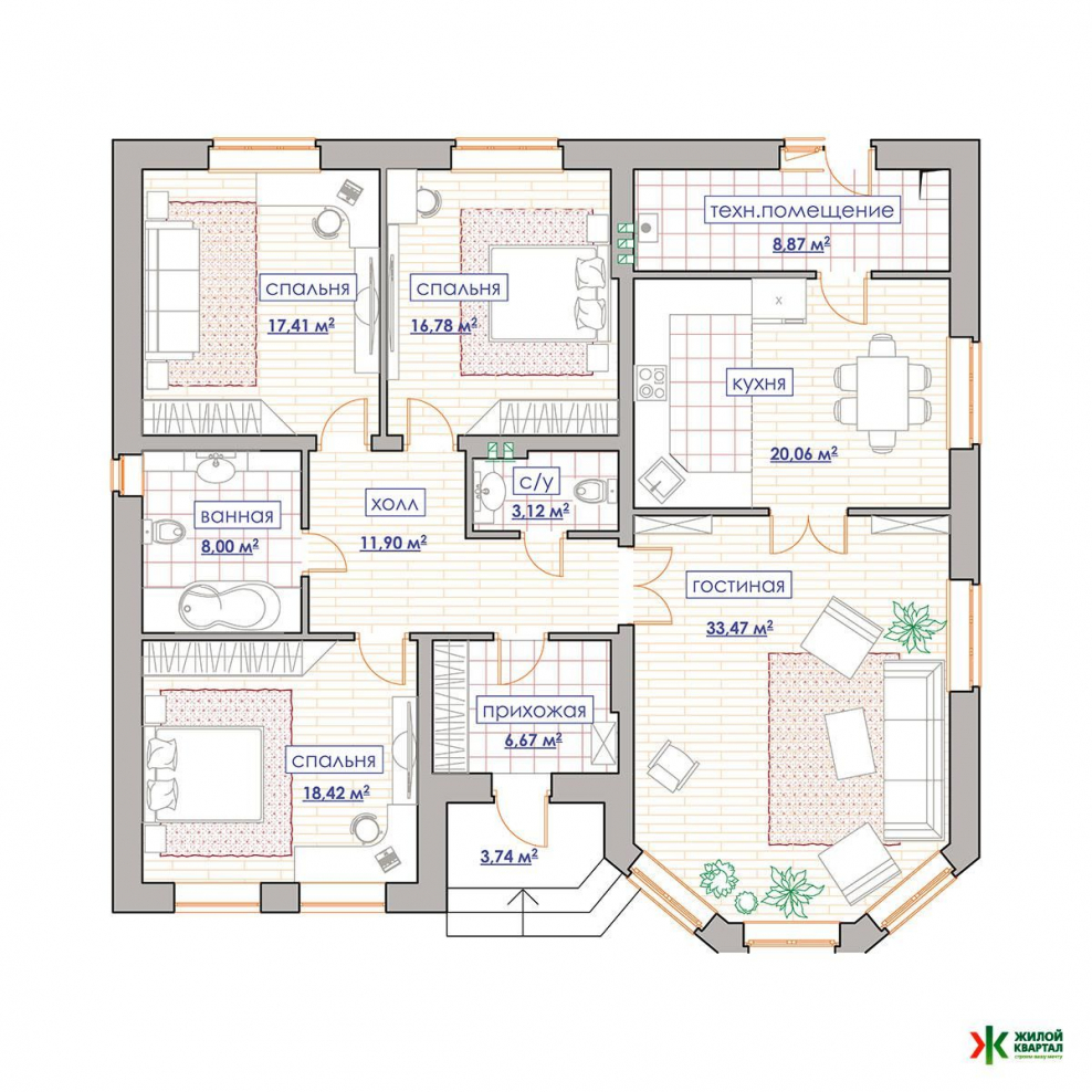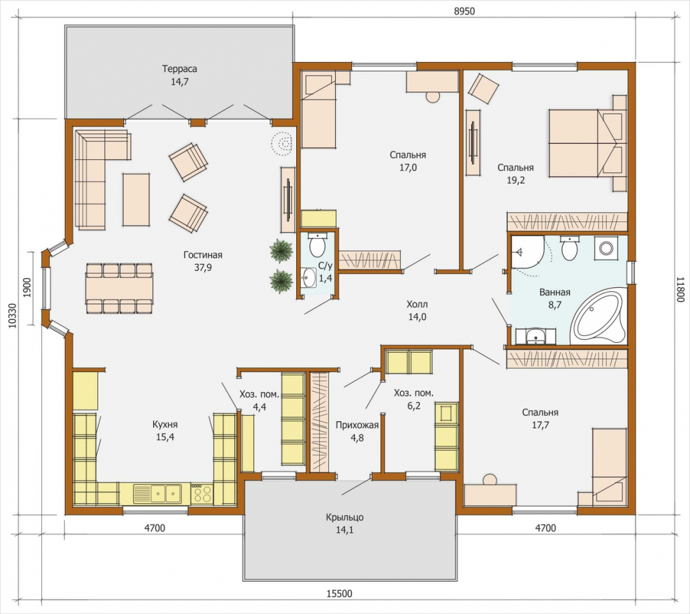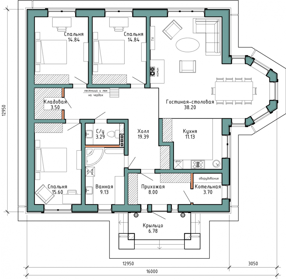 Проекты одноэтажных домов с тремя спальнями