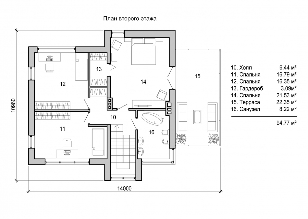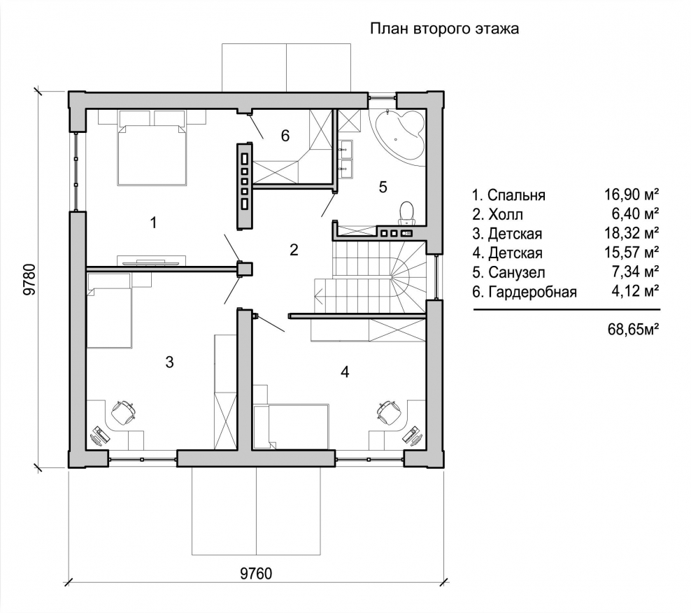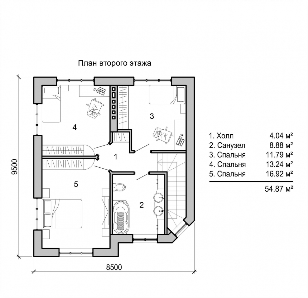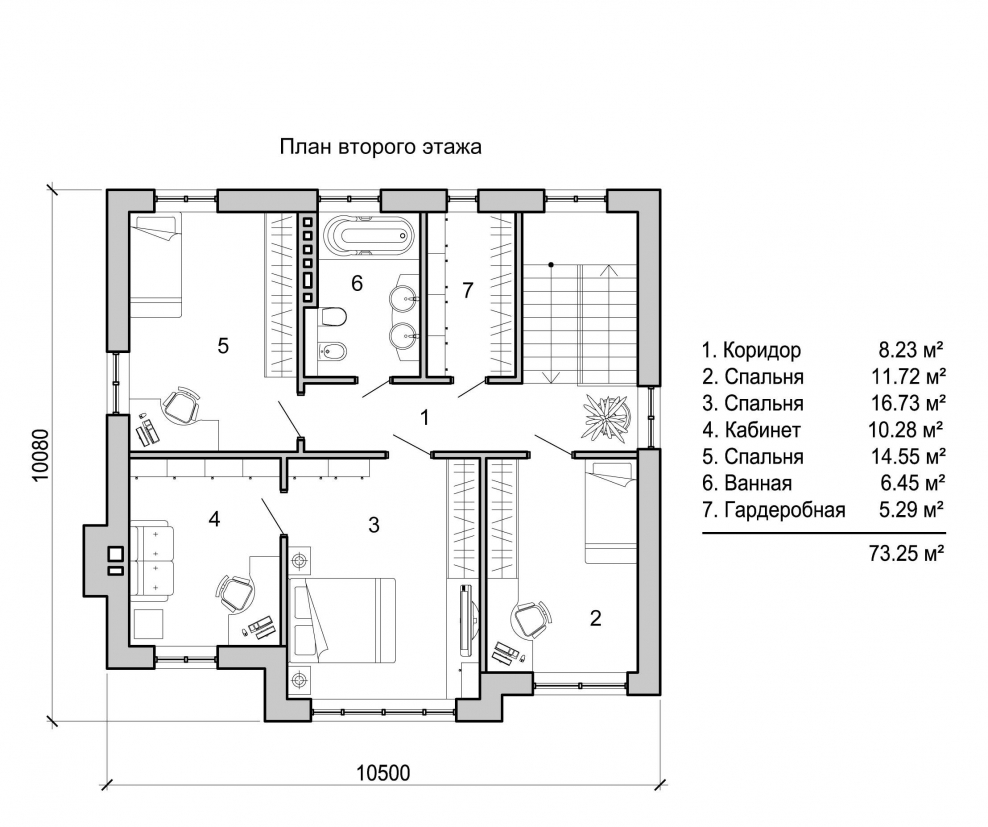 План второго этажа с 3 спальнями