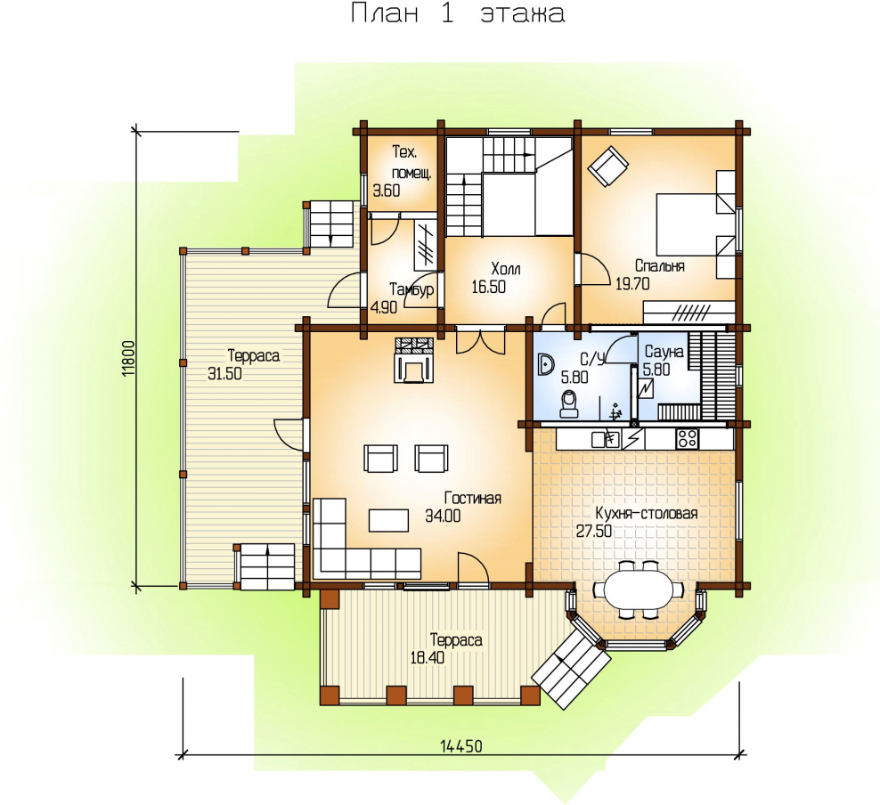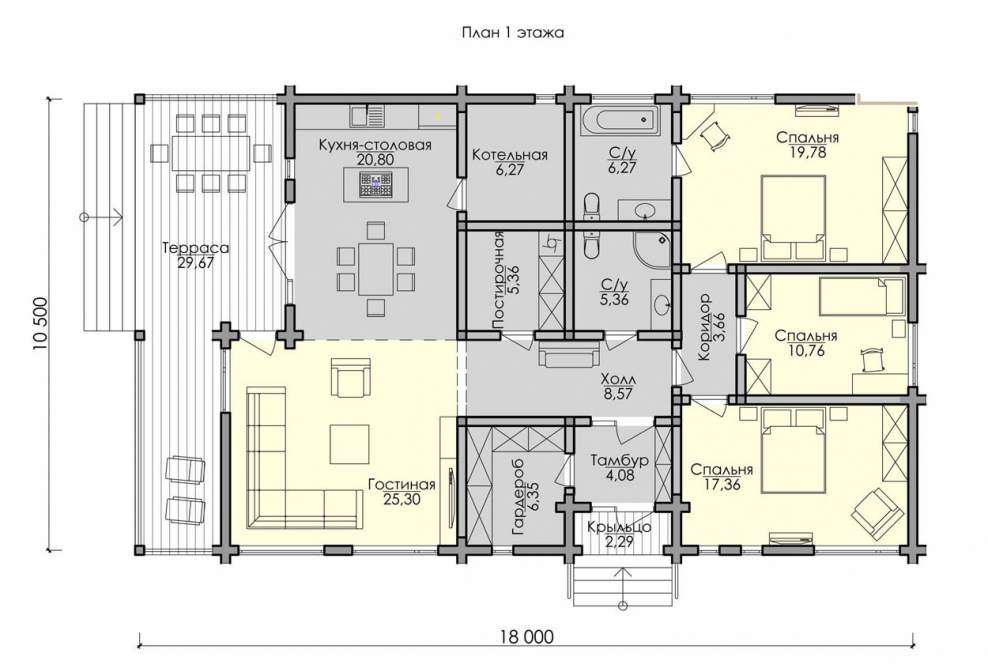 Дом из оцилиндрованного бревна планировка