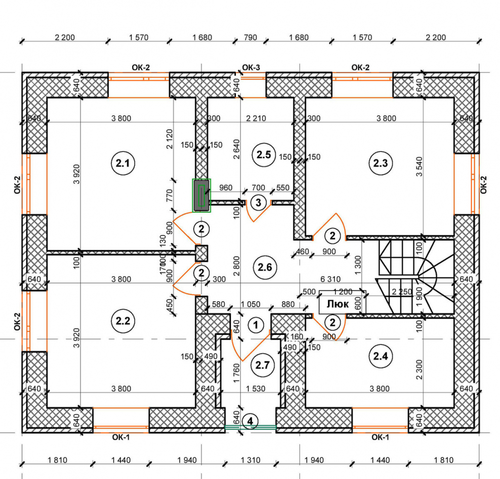 Планировка 2 этажа с лестницей