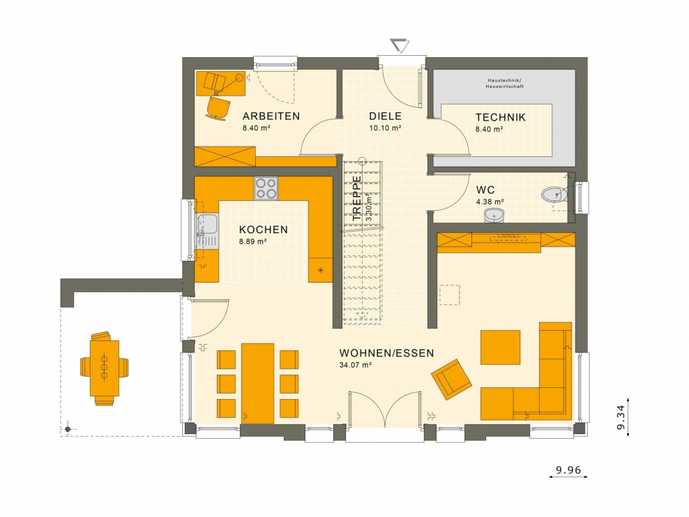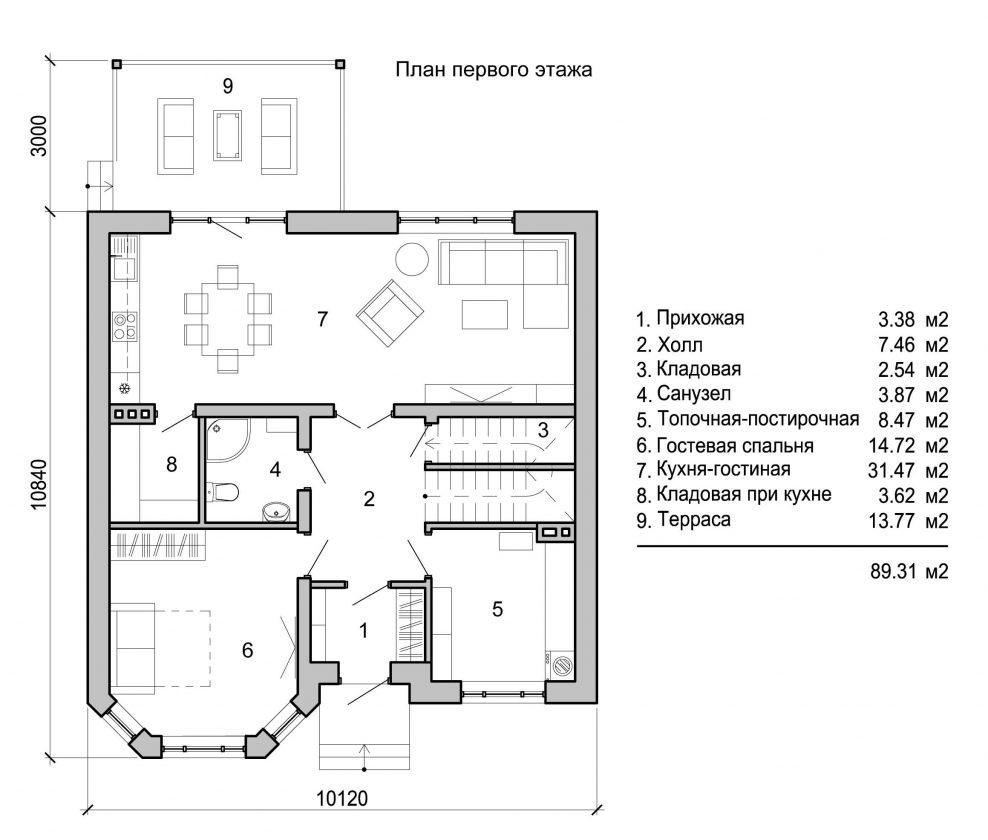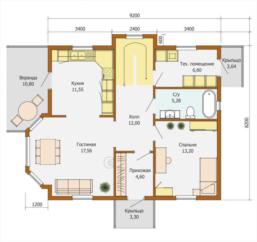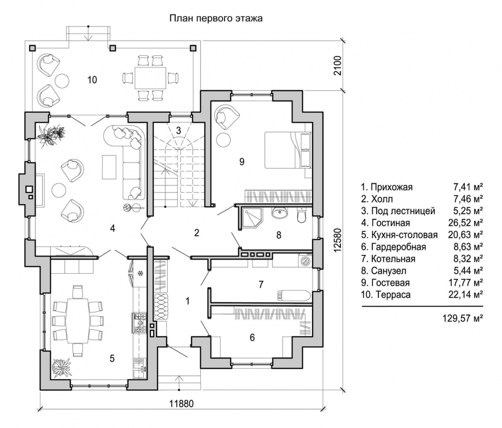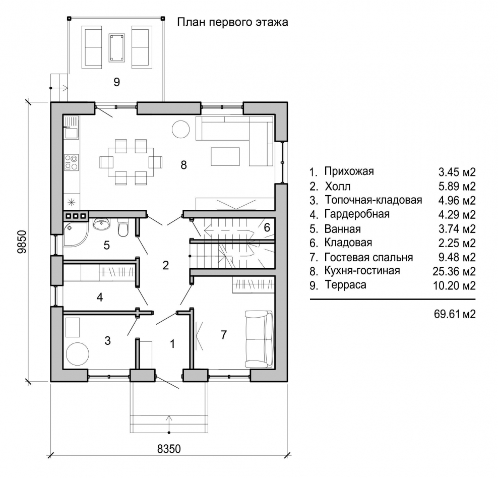 Планировка первого этажа двухэтажного дома