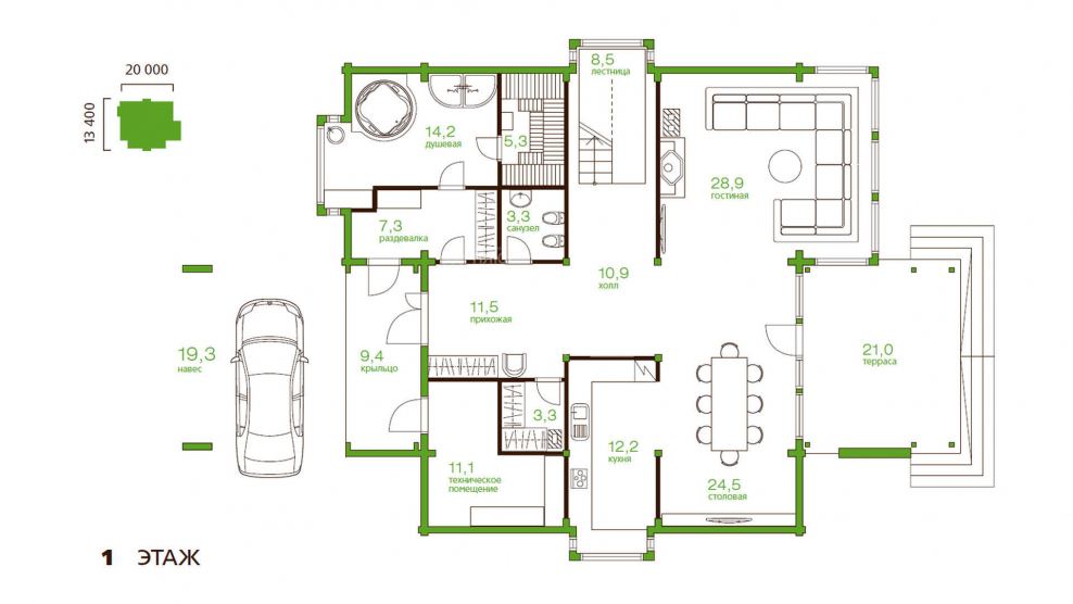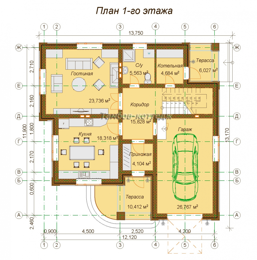 План 1 этажного дома с гаражом