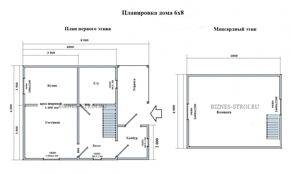 Планировка дома 6 на 6