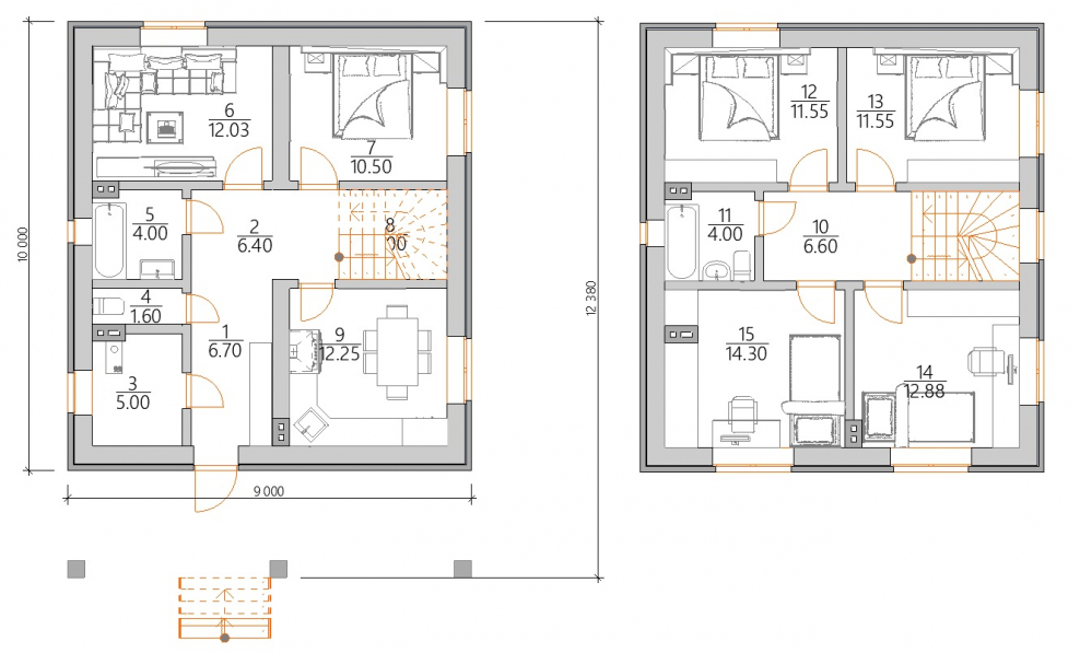 Планировка 2 этажного дома 2 комнаты