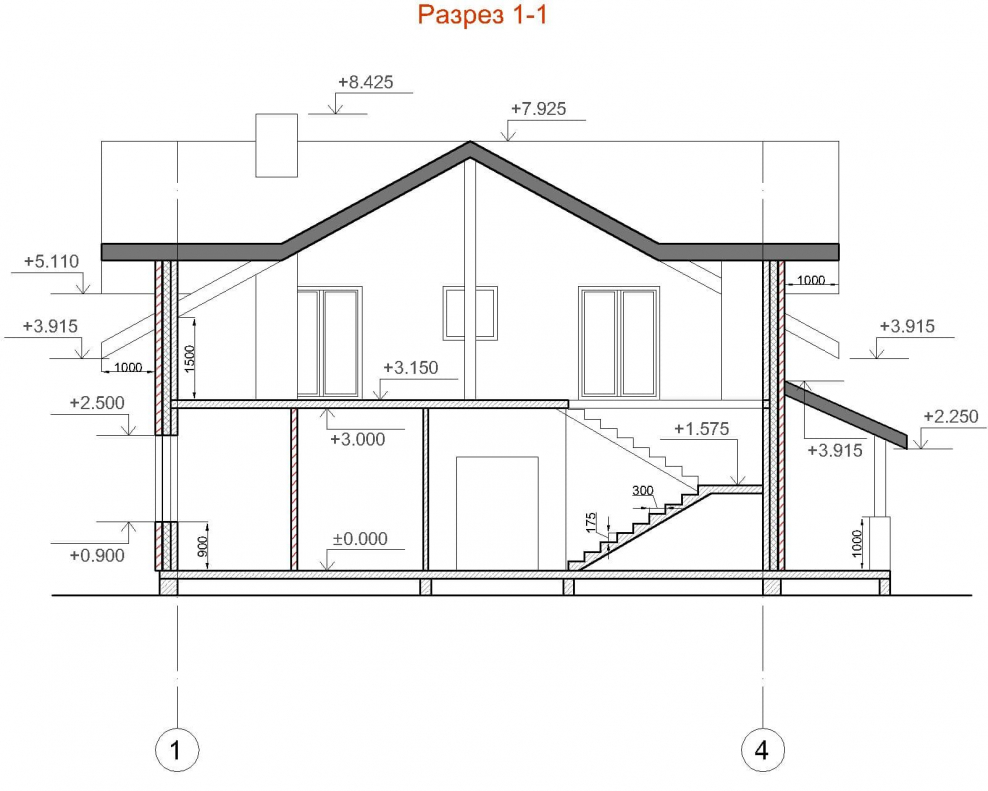 Разрез дома с цокольным этажом