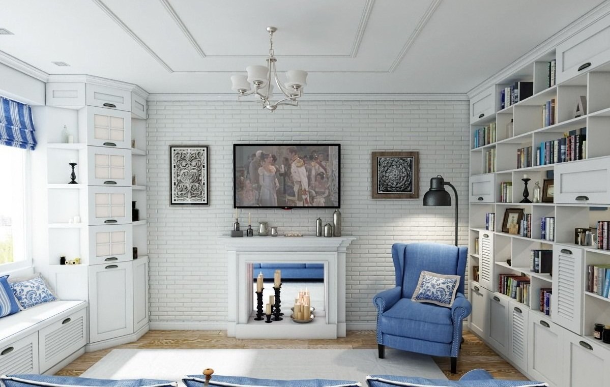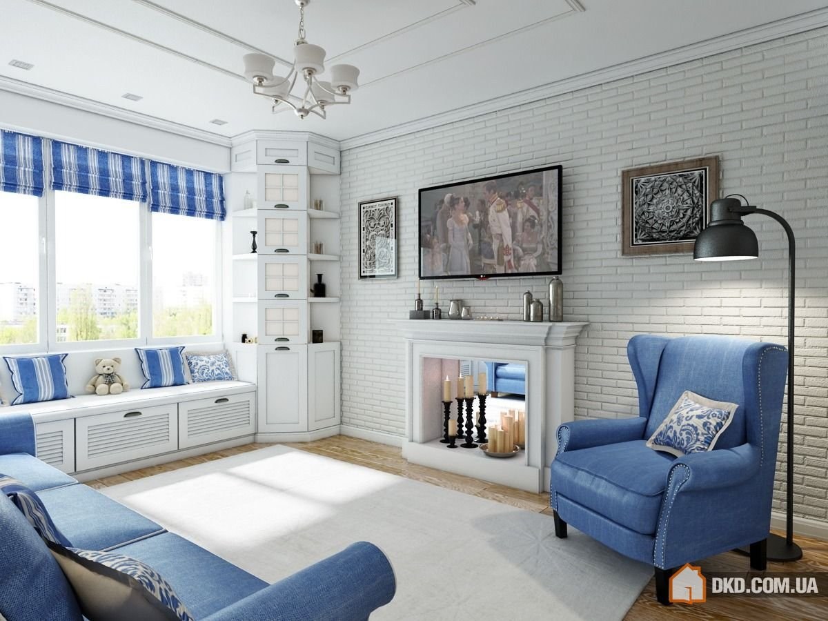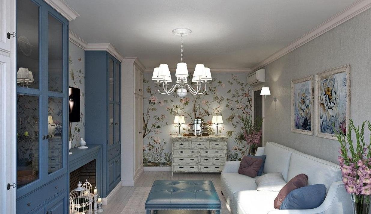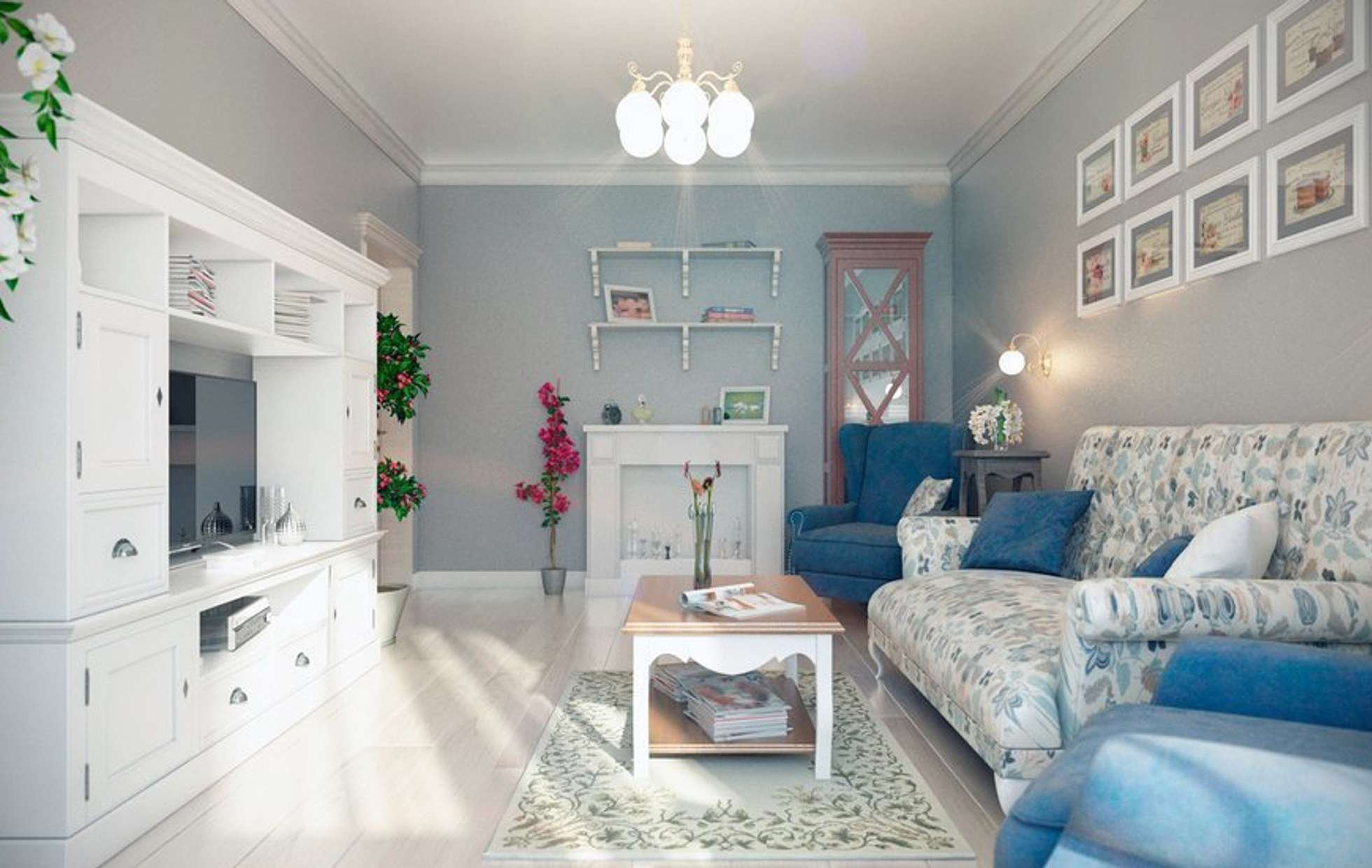 Гостиная в стиле Прованс в голубых тонах