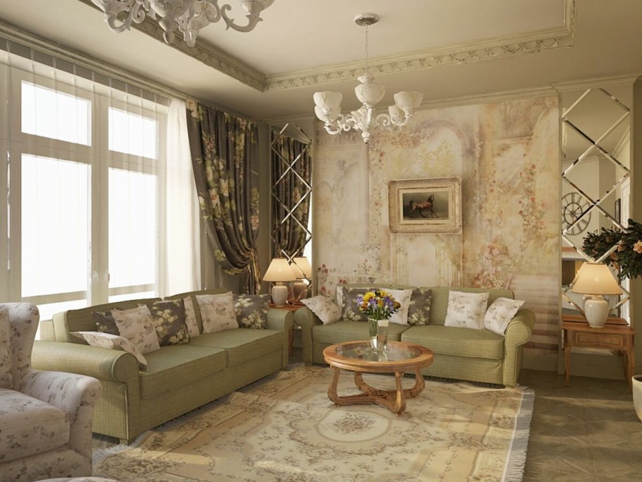 Стиль Прованс в интерьере гостиной