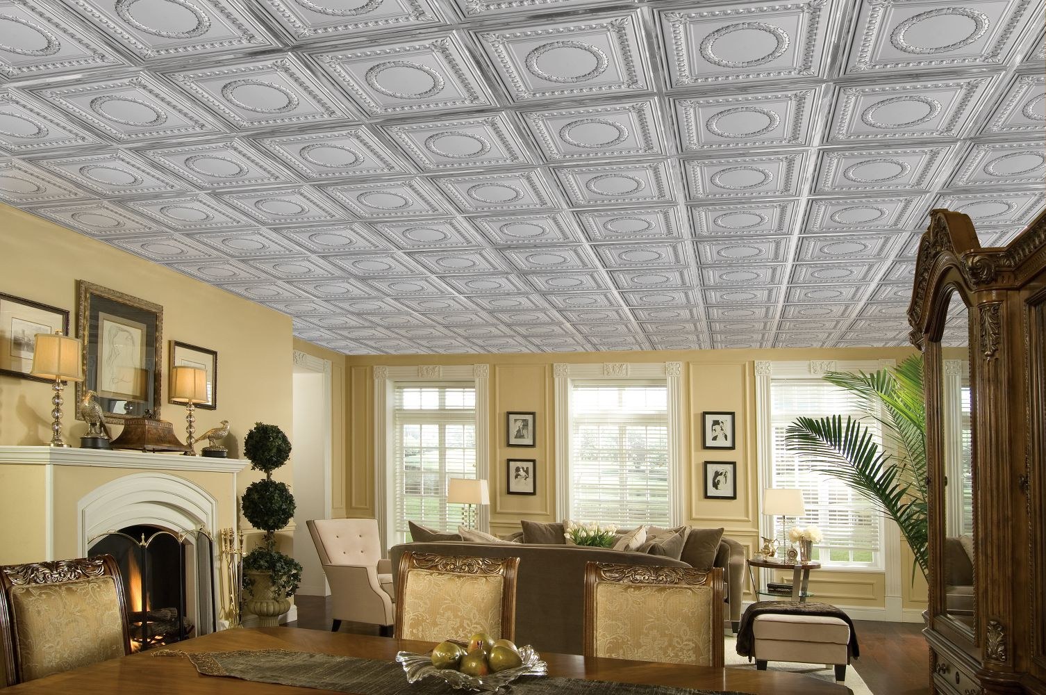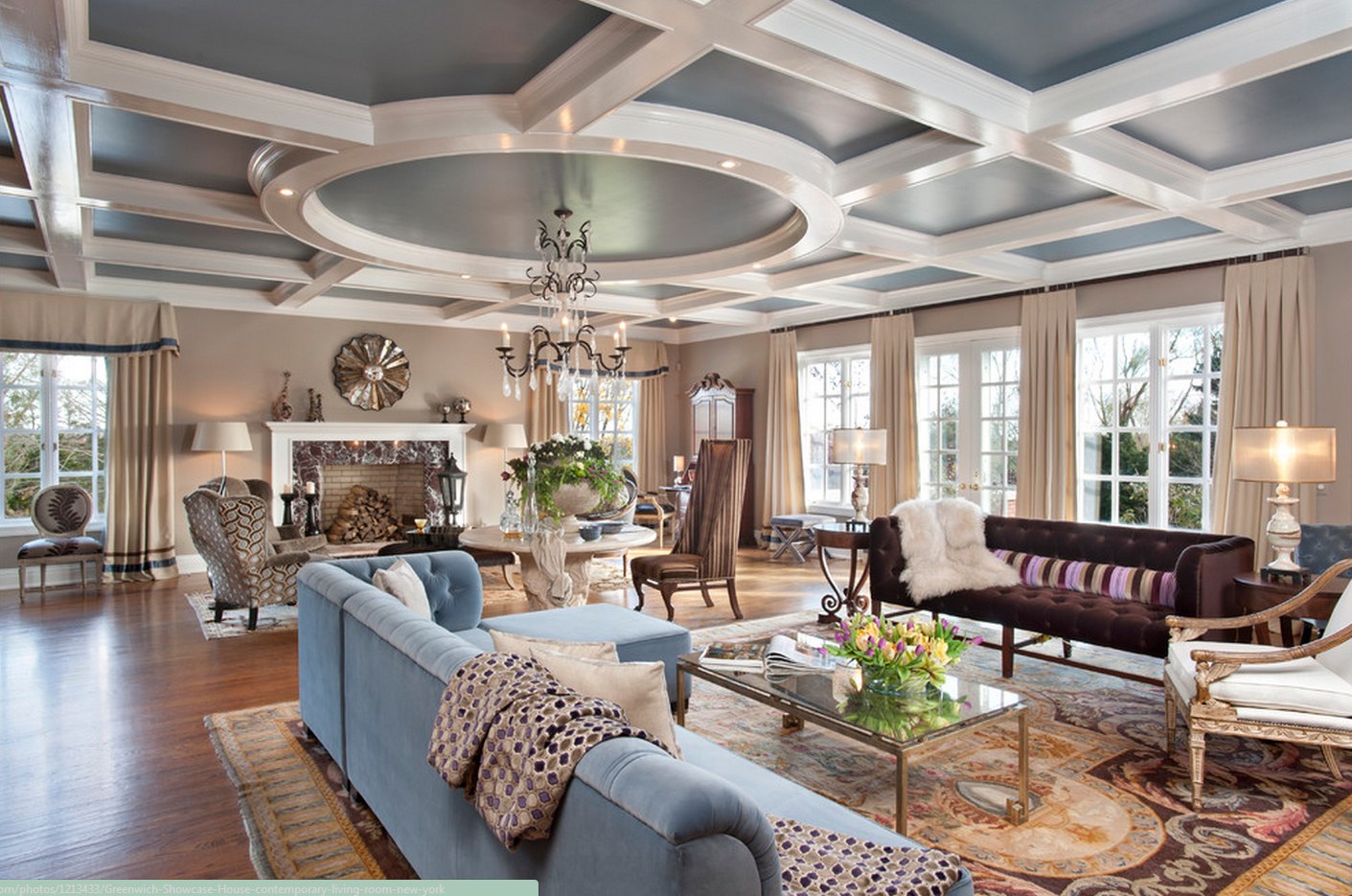 Гостиная с кессонным потолком