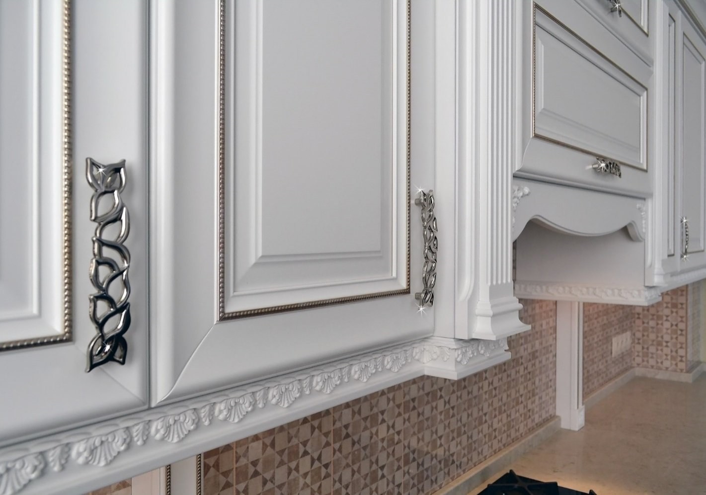Белая кухня с фрезерованными фасадами