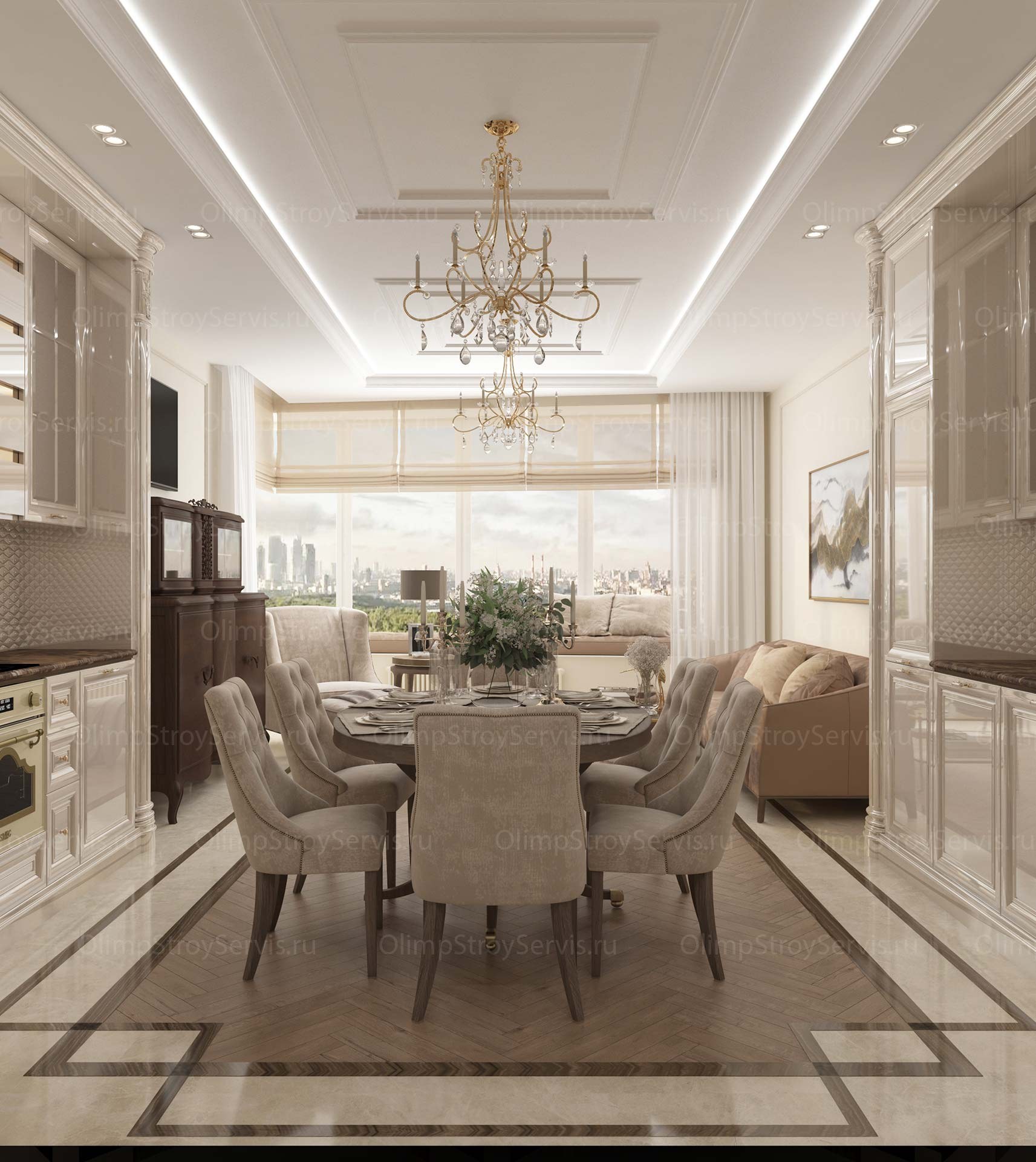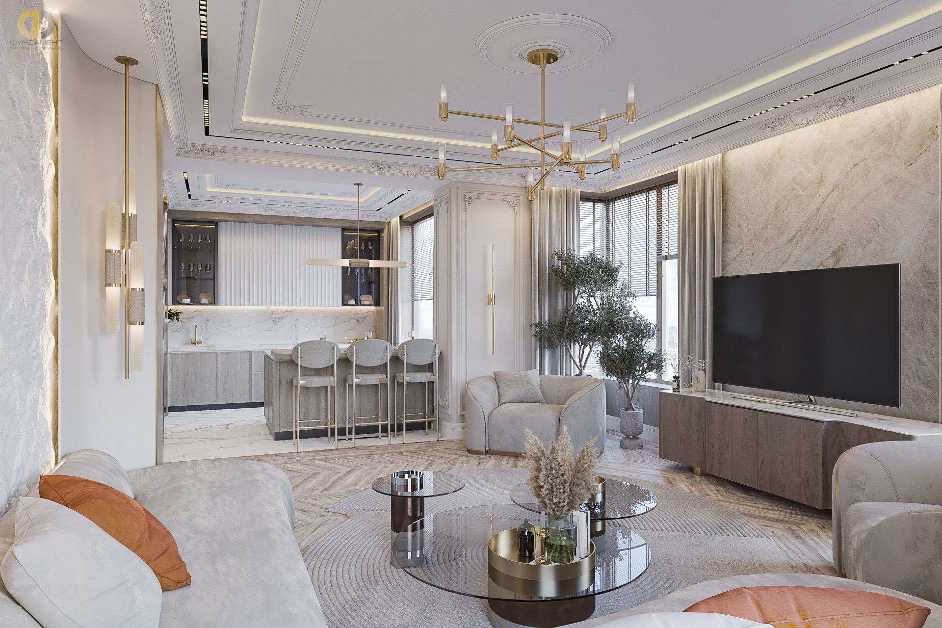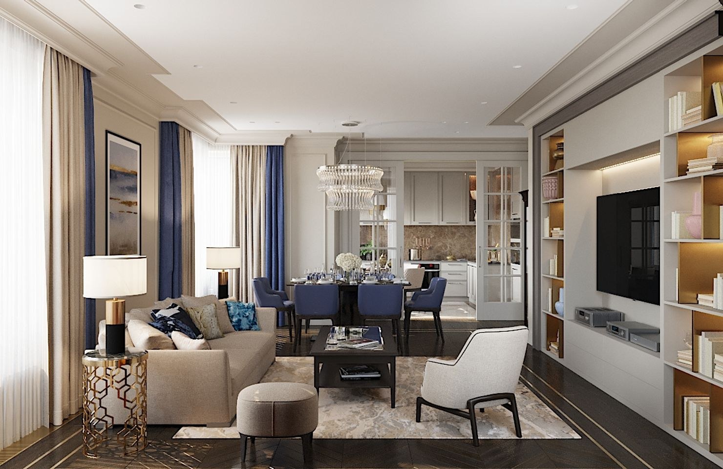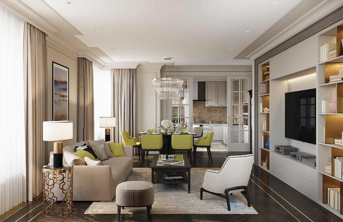 Интерьер современная классика 3d визуализация