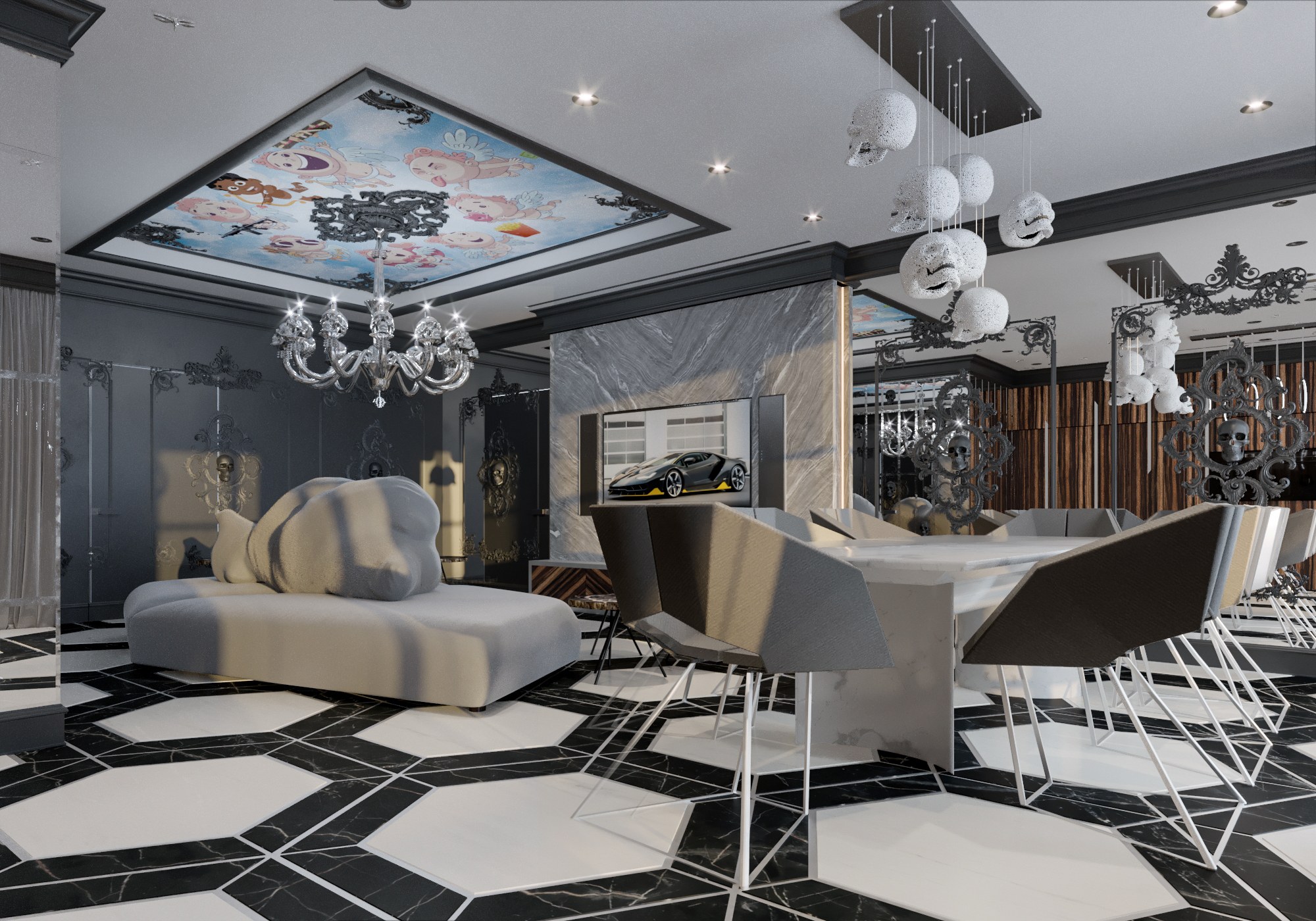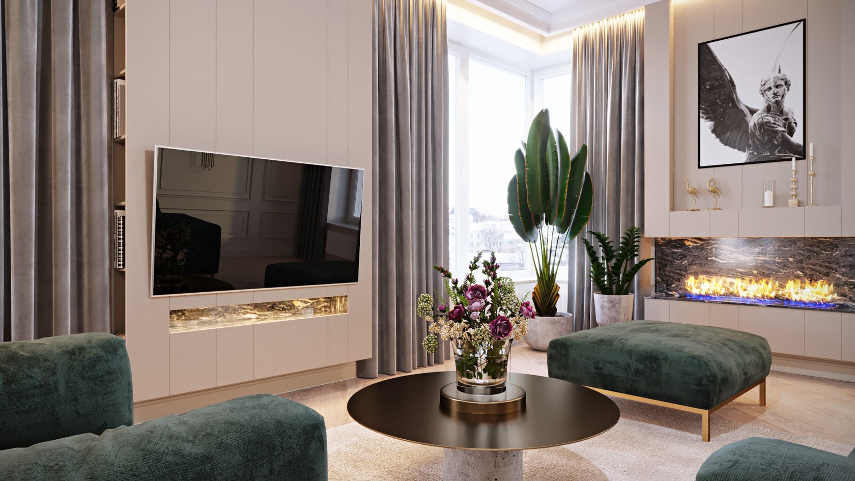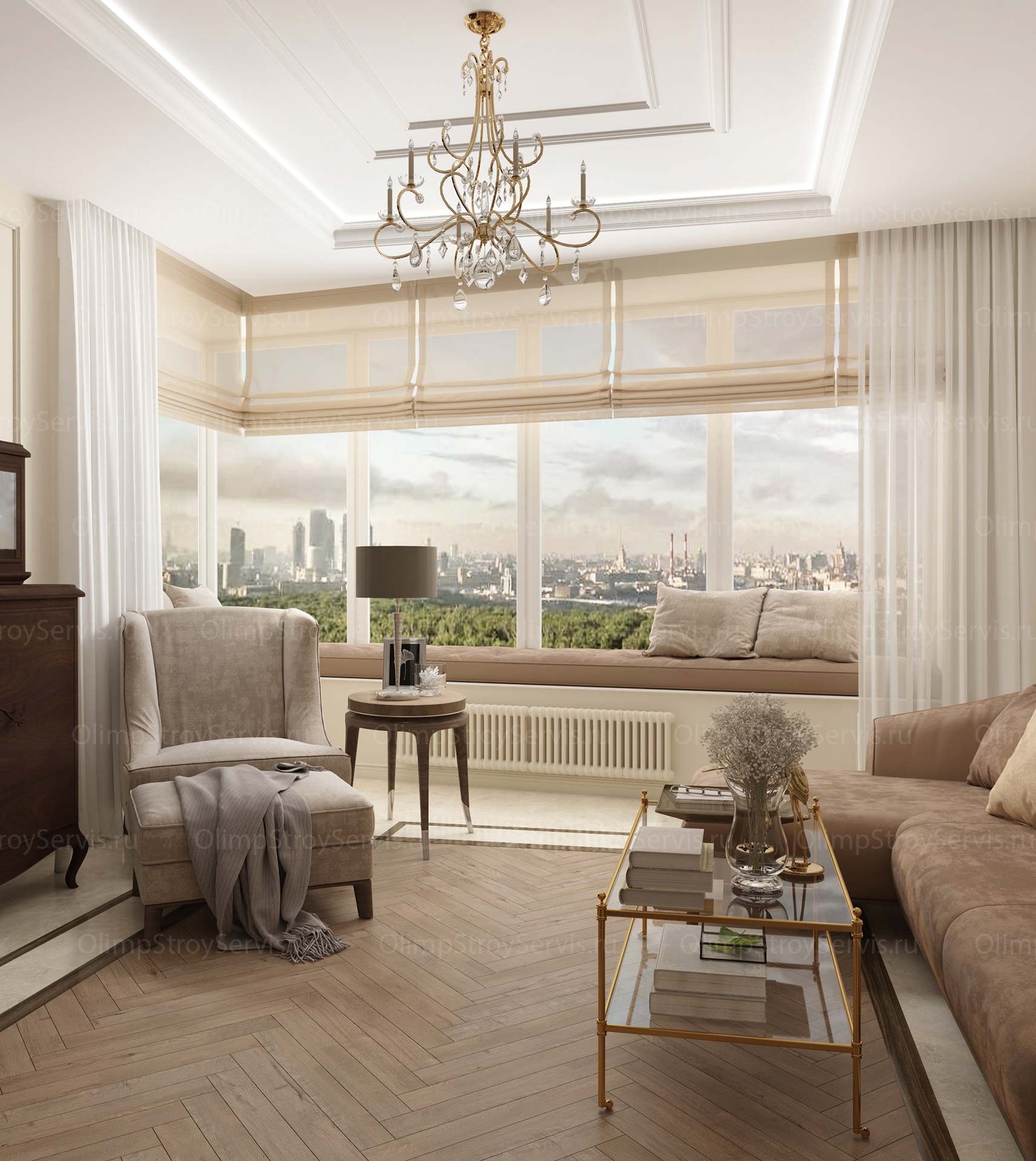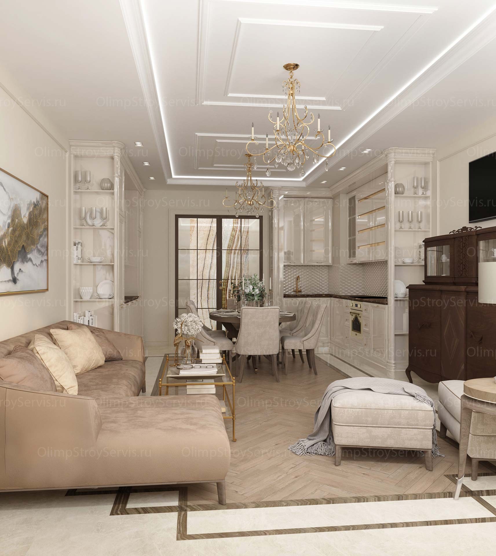 Интерьер современная классика 3d визуализация