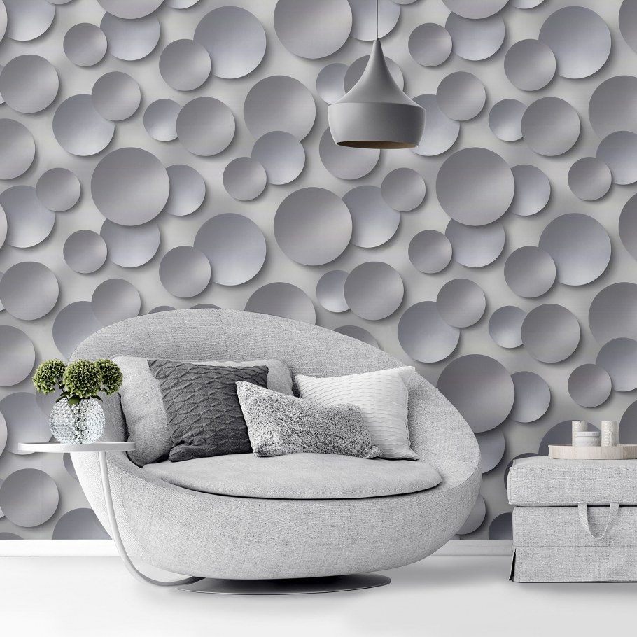 Обои с кругами для стен в интерьере