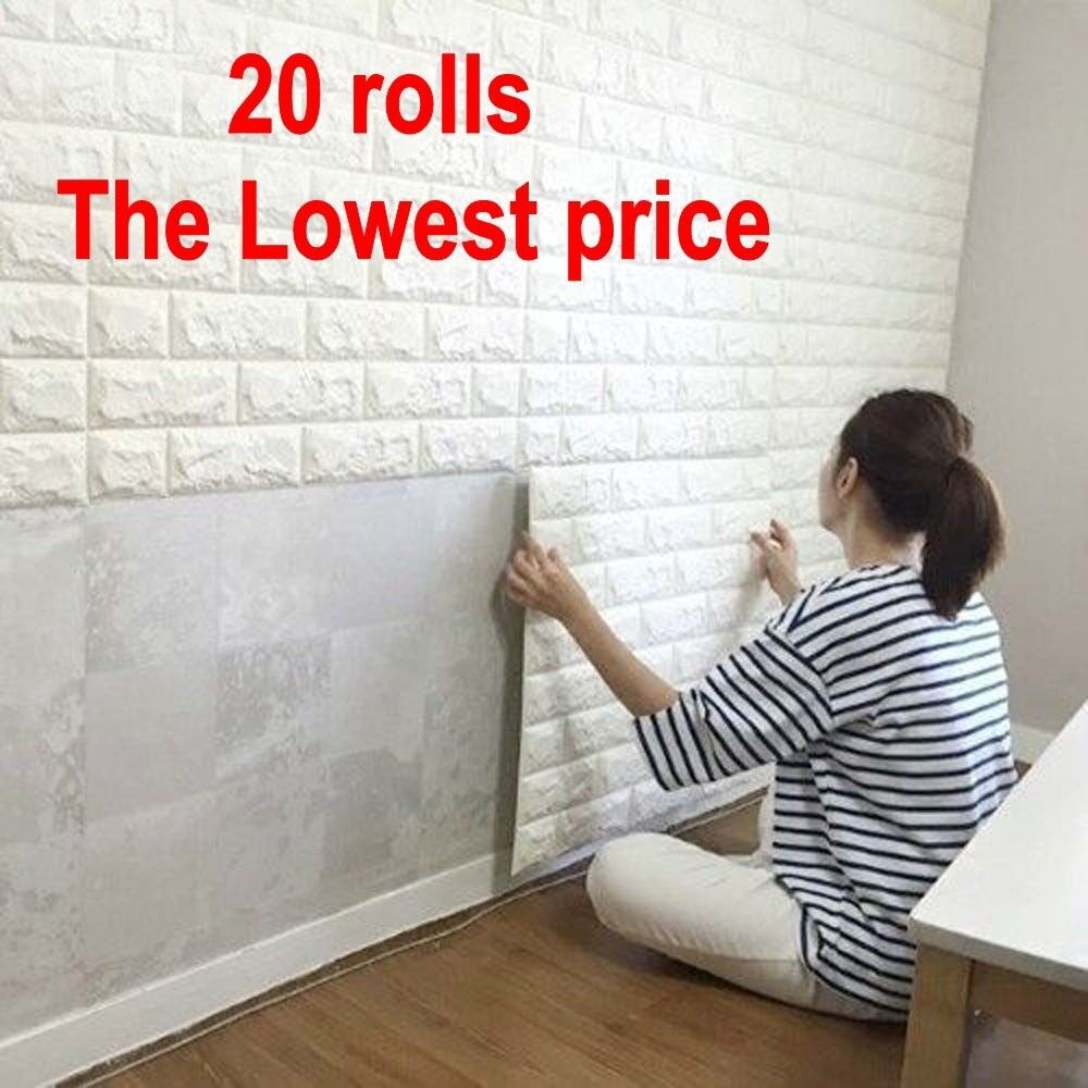 3d панели самоклеящиеся блок 20шт белый кирпич 76х71