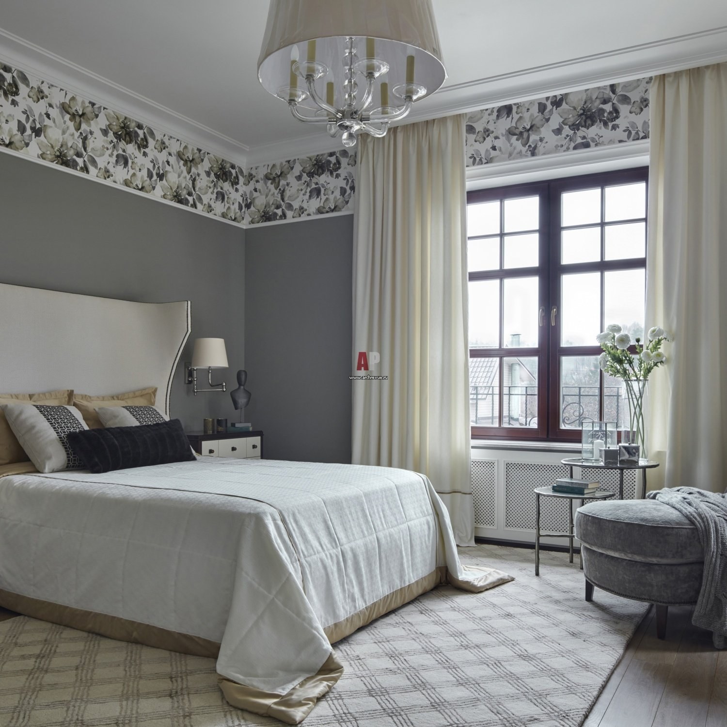 Обои серого цвета в интерьере спальни