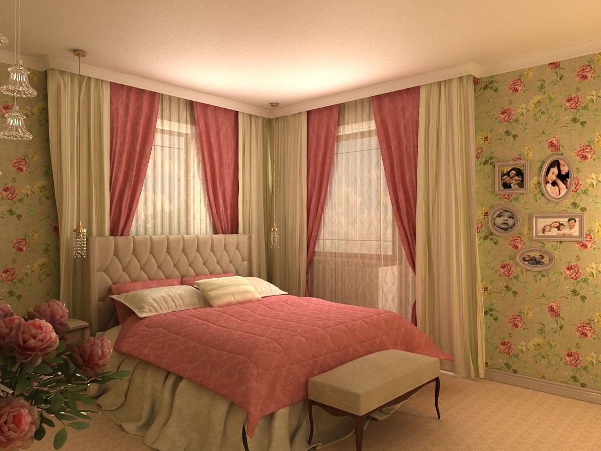 Шторы в цветочек в интерьере