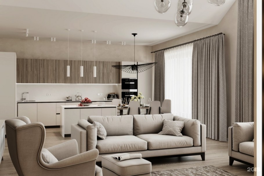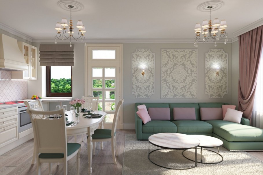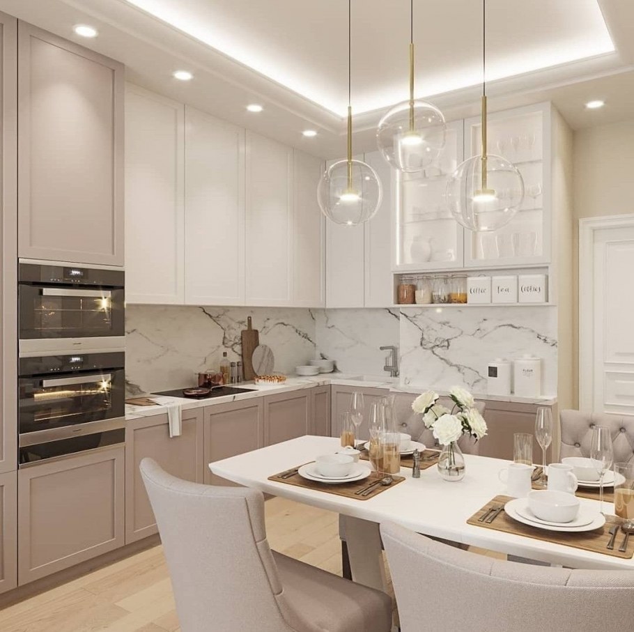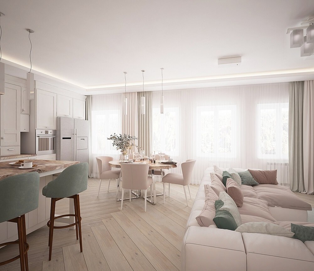Дизайн кухни гостинной в светлых тонах (82 фото)