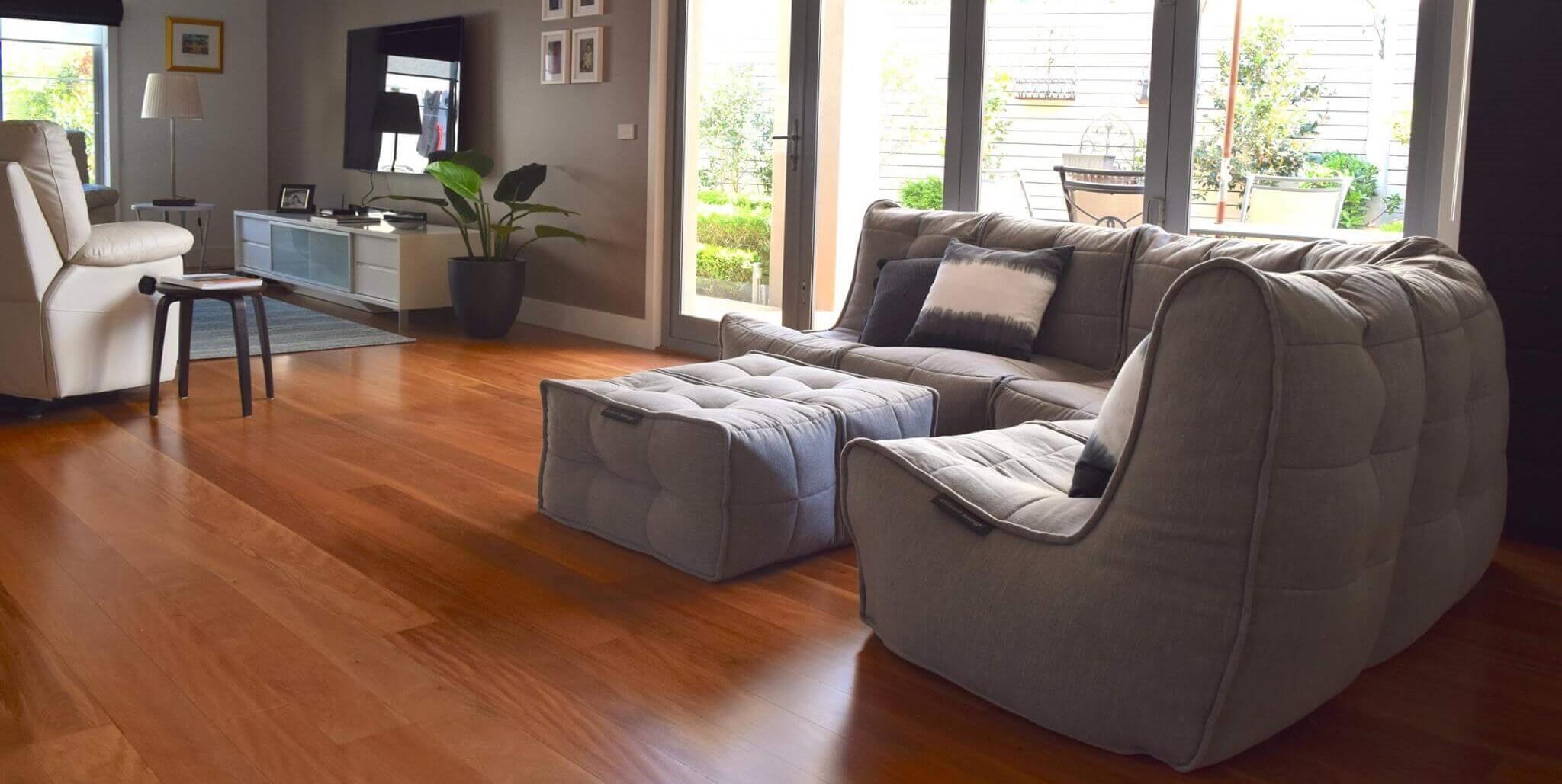 Гостиная с бескаркасной мебелью
