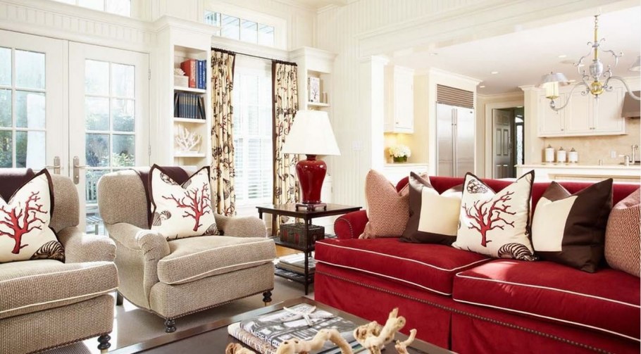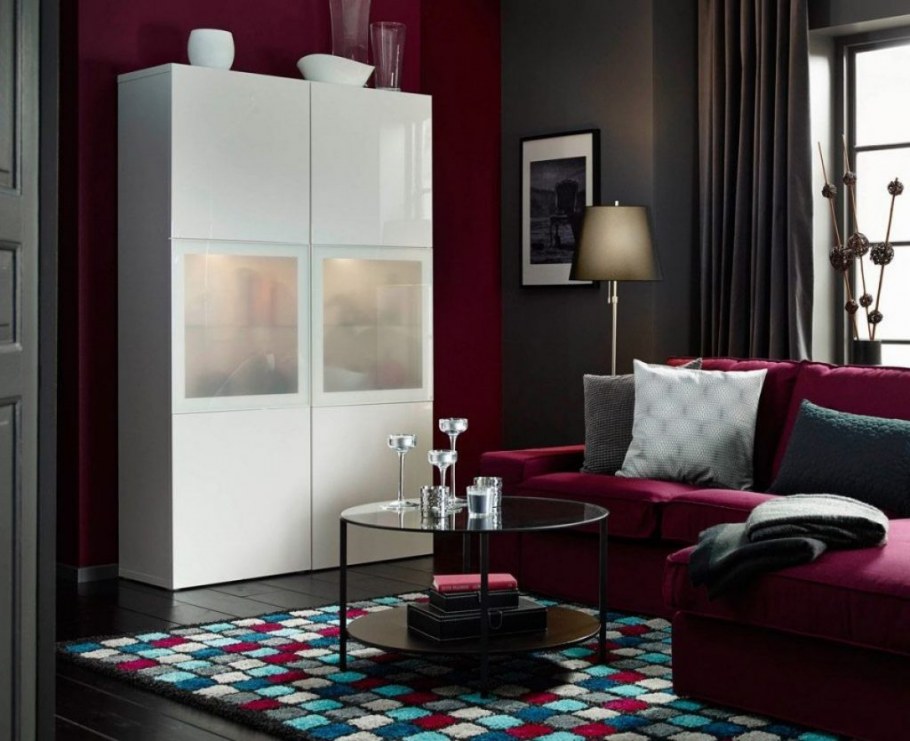 Гостиная в бордовых тонах в интерьере (79 фото)