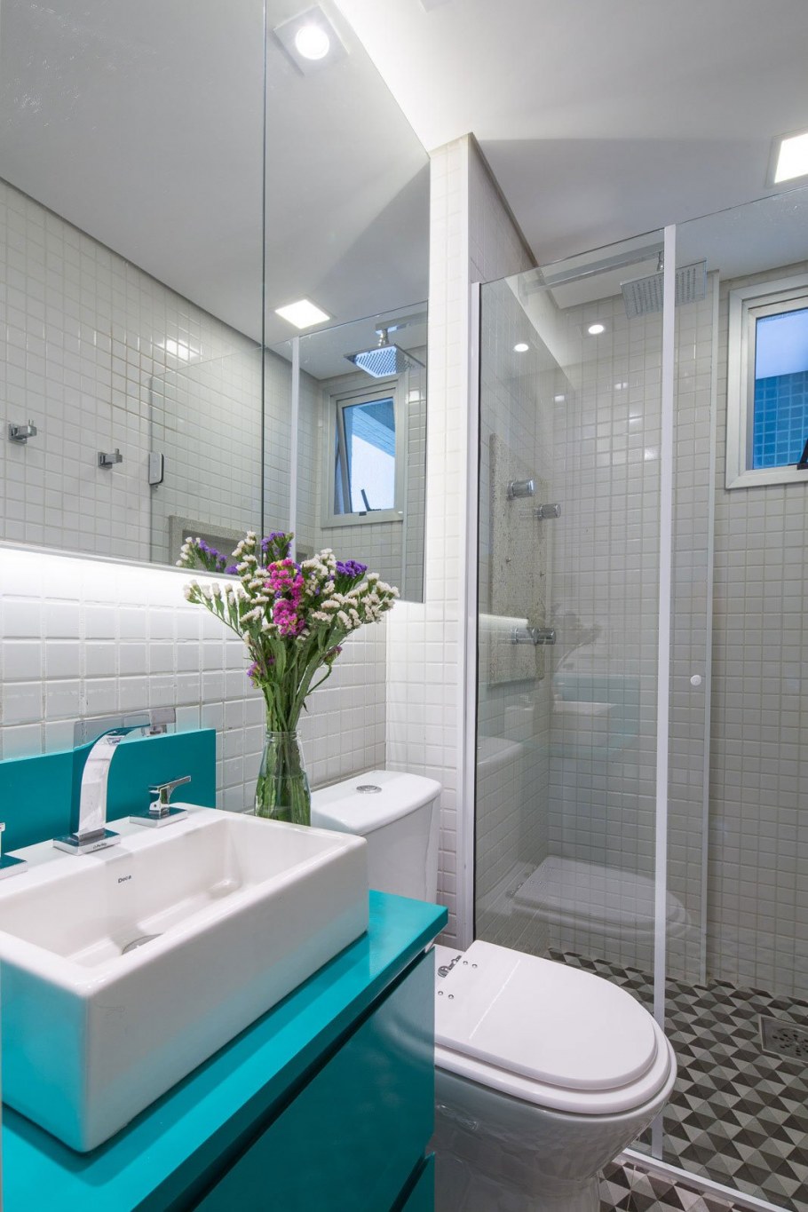 Узкая ванная комната с душевой