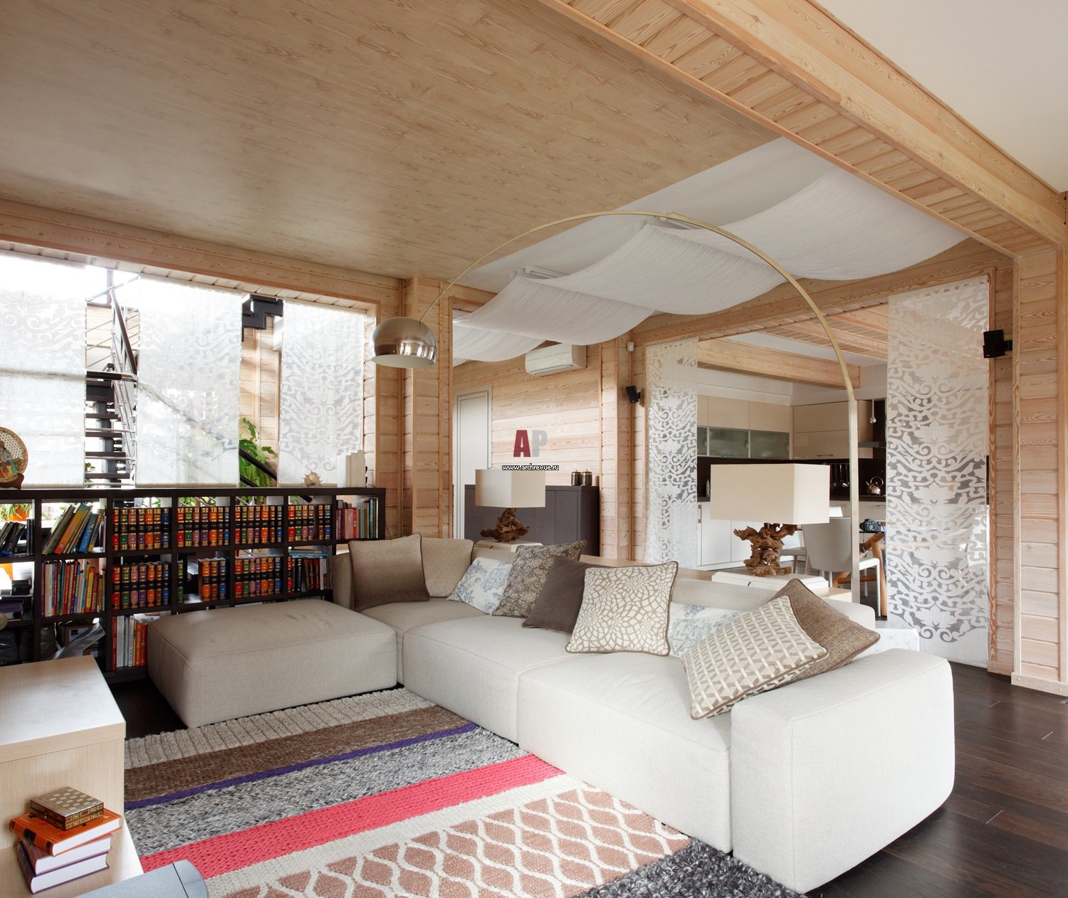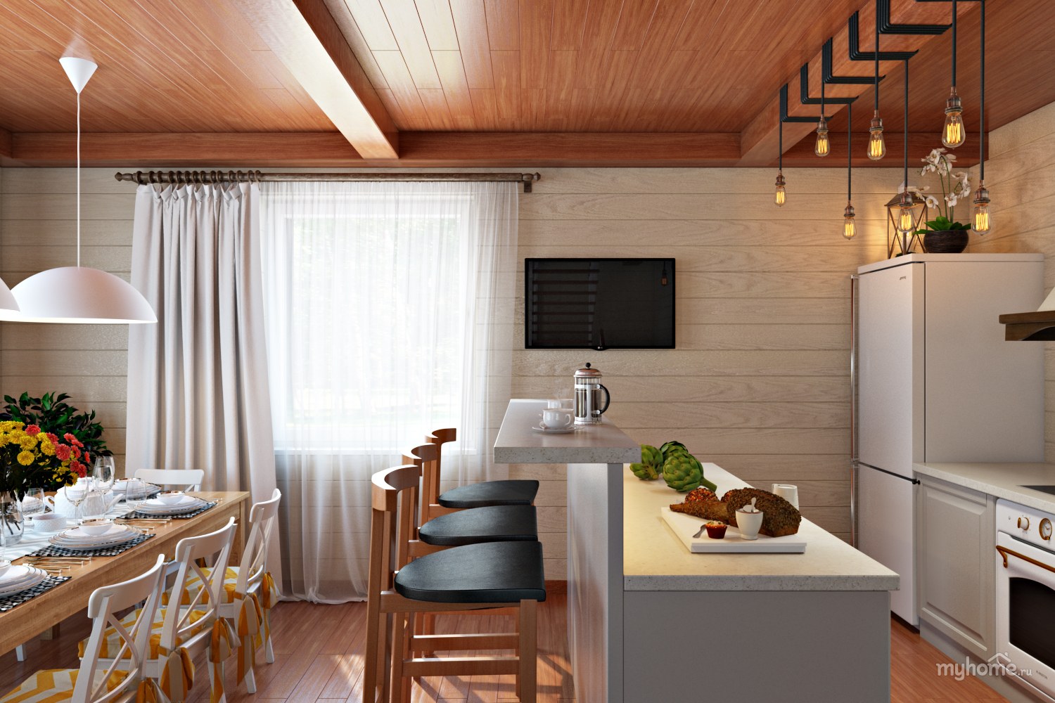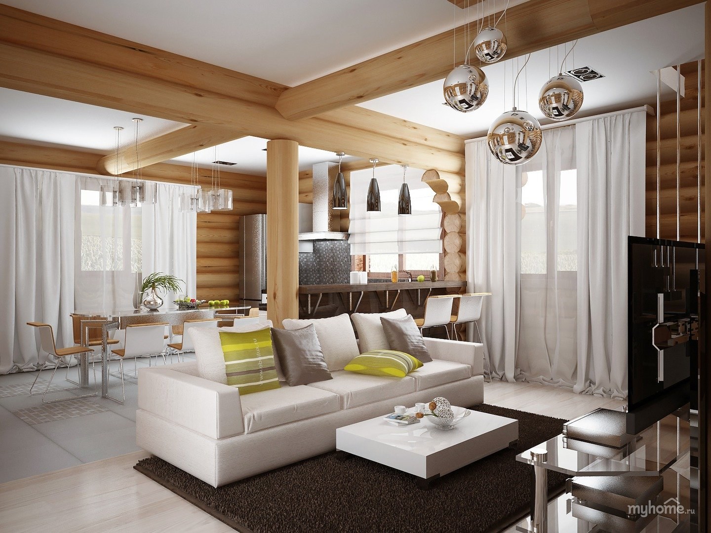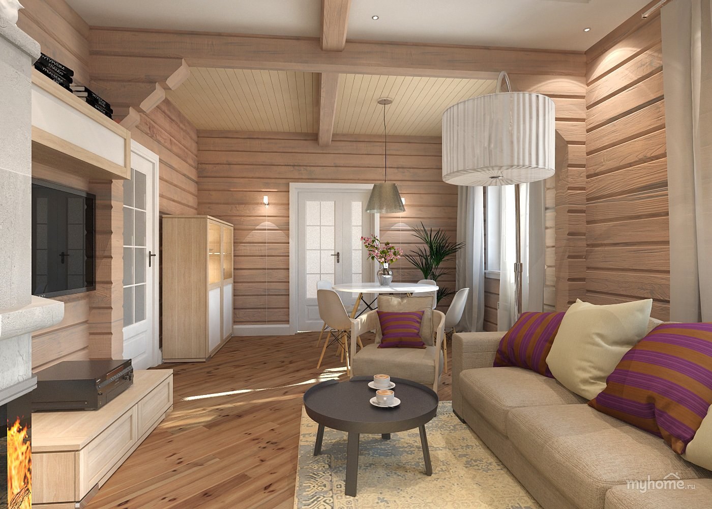 Интерьеры в домах из клееного бруса в скандинавском стиле