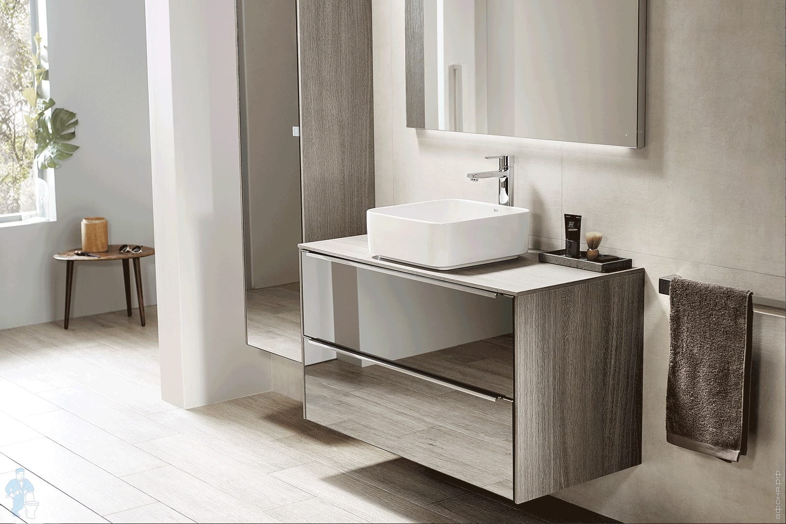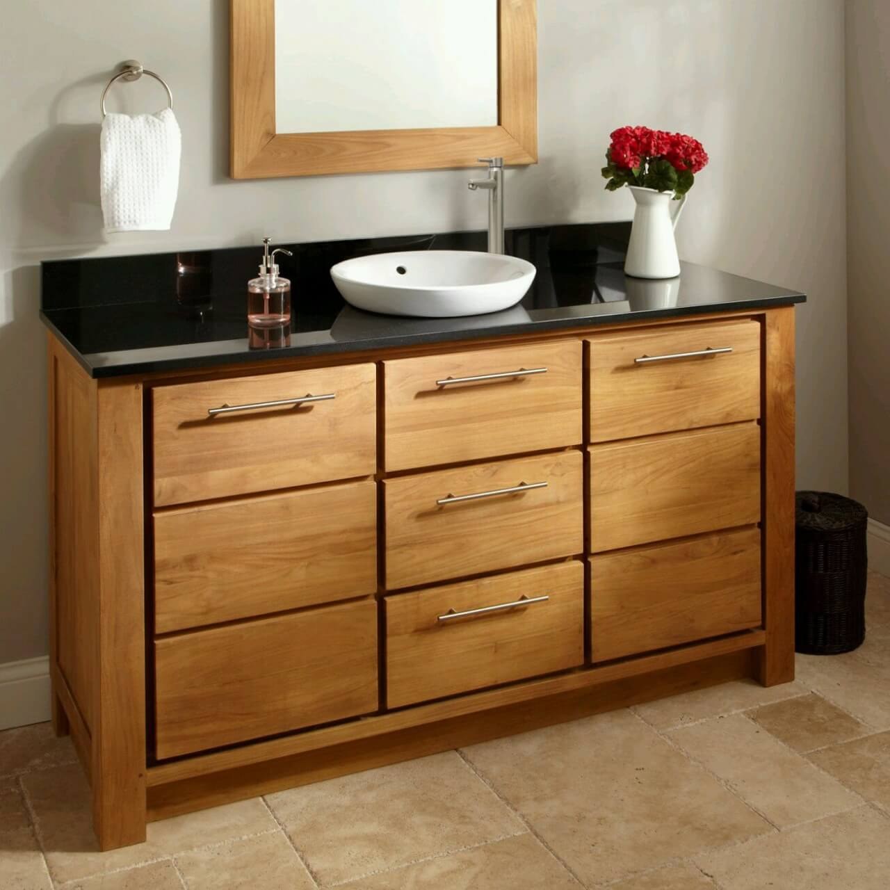 Раковина с тумбой под дерево в ванную комнату