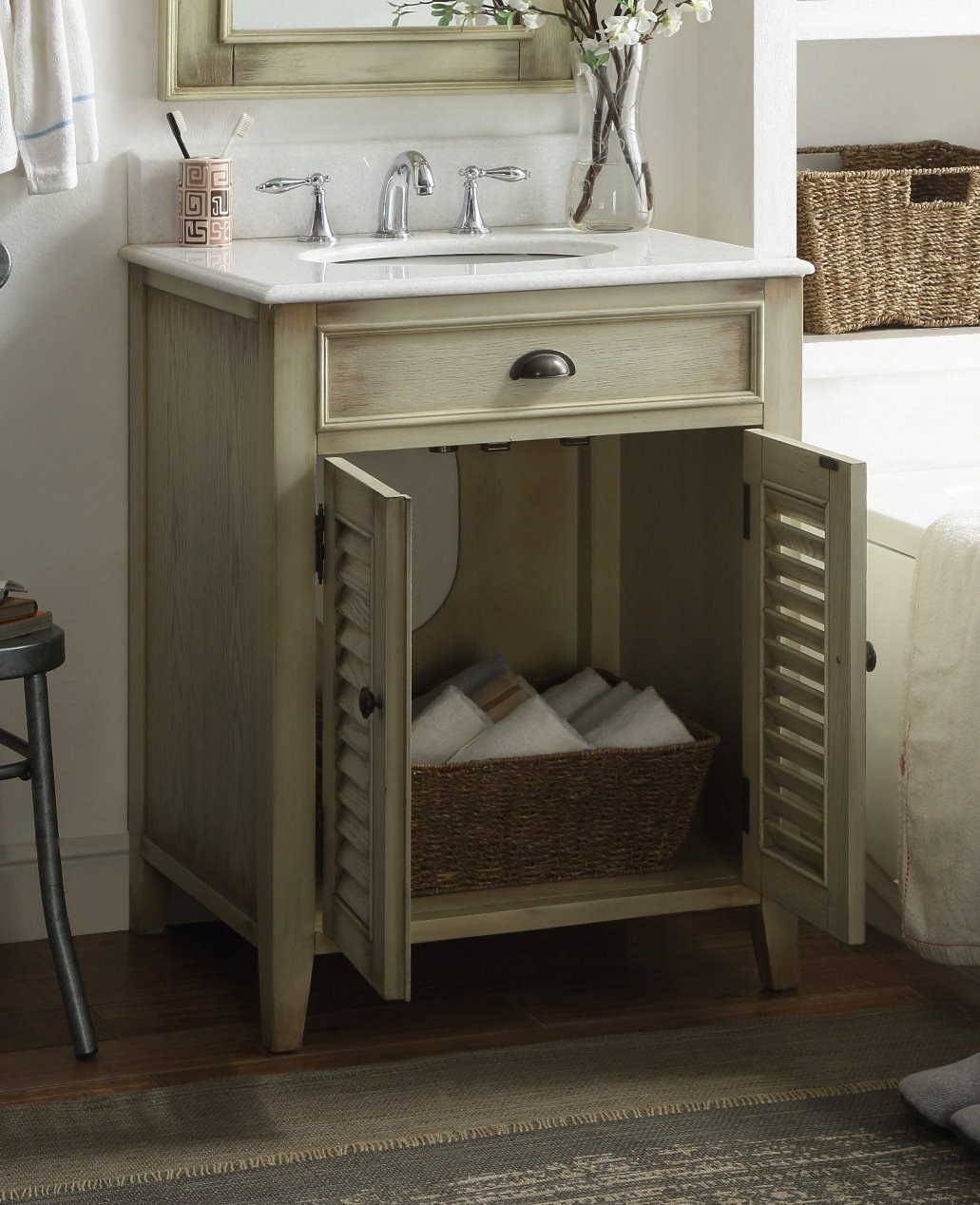 Открытая тумба под раковину в ванную
