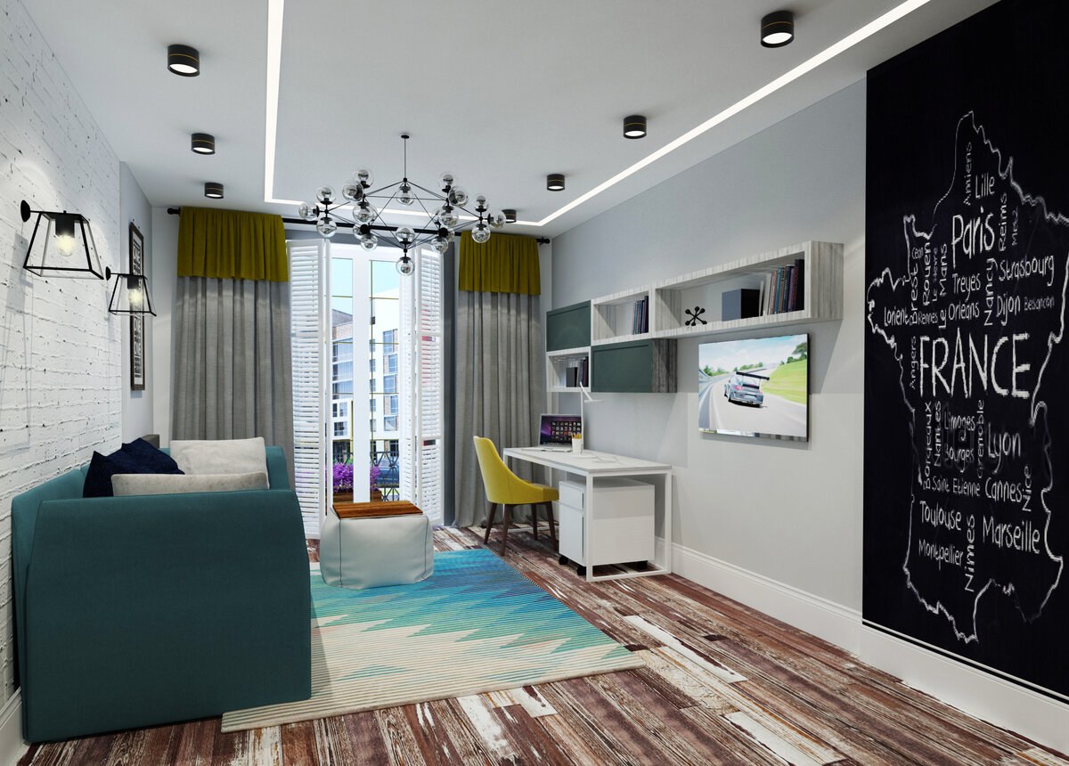 Комната подростка 12 кв в стиле лофт